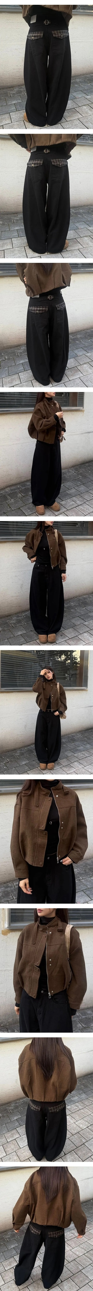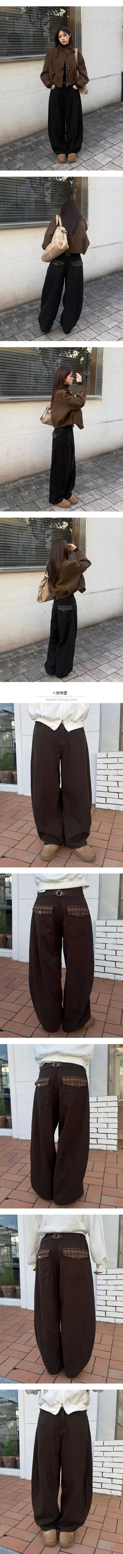 【優惠價預訂】韓國加絨格紋口袋彎刀褲(2色)
