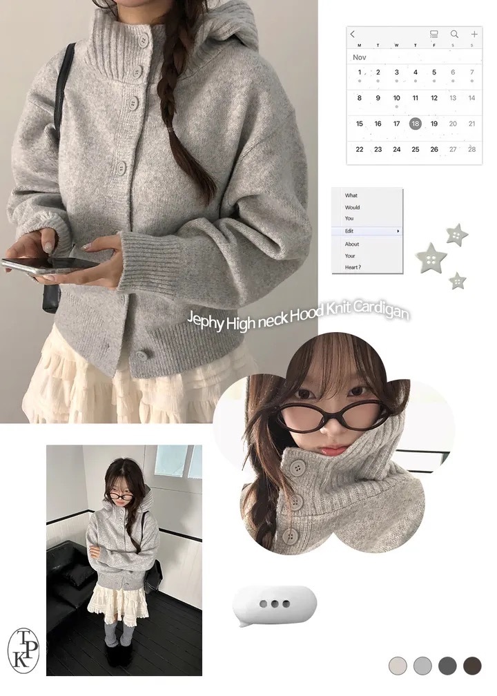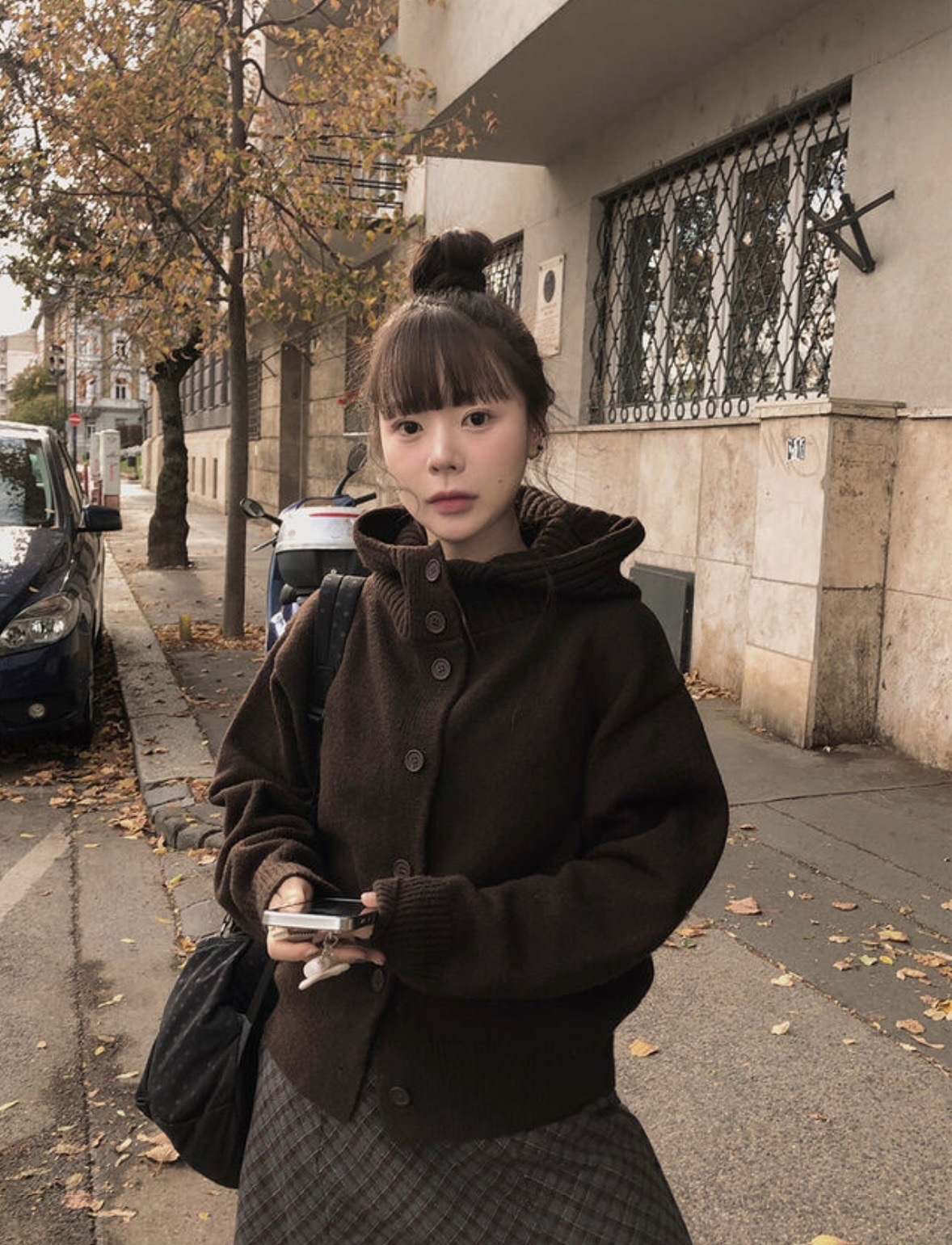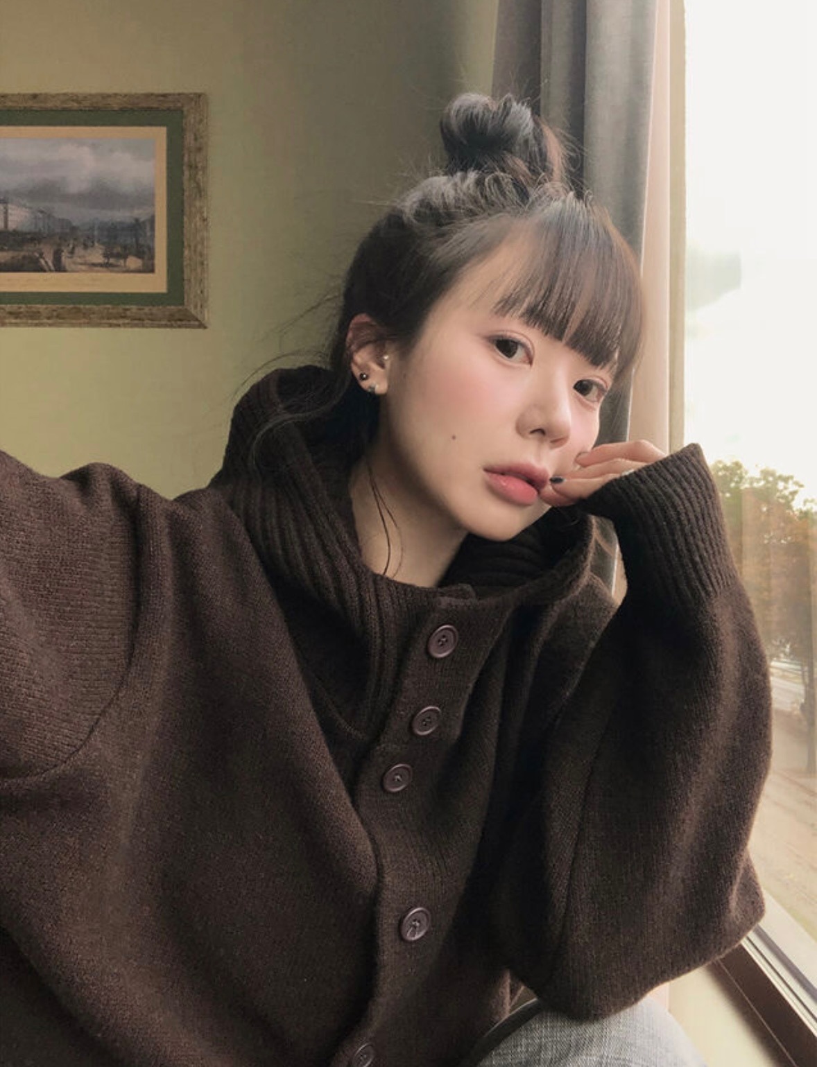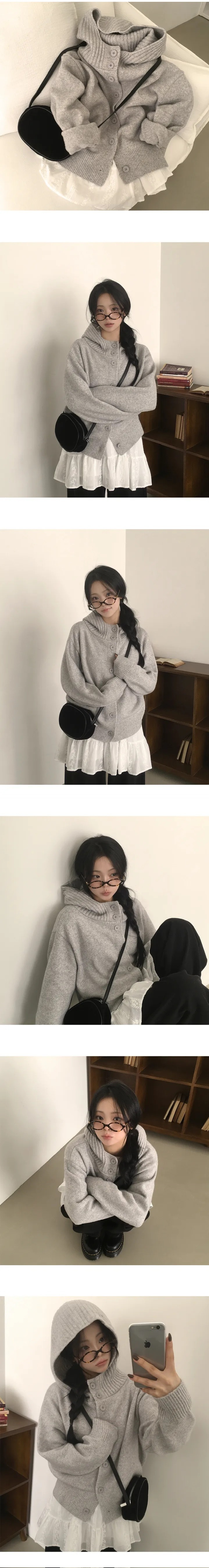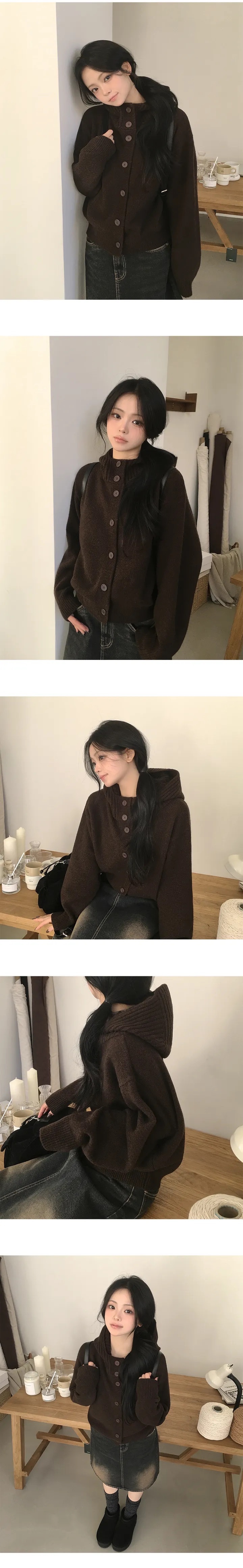 【優惠價預訂】韓國連帽鈕扣針織上衣外套(4色)