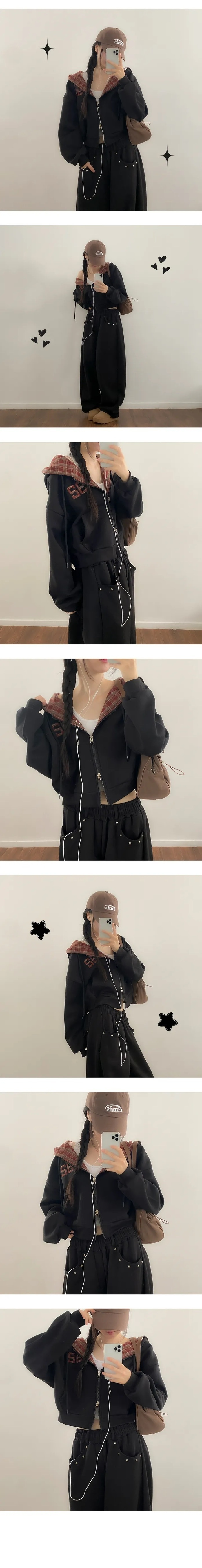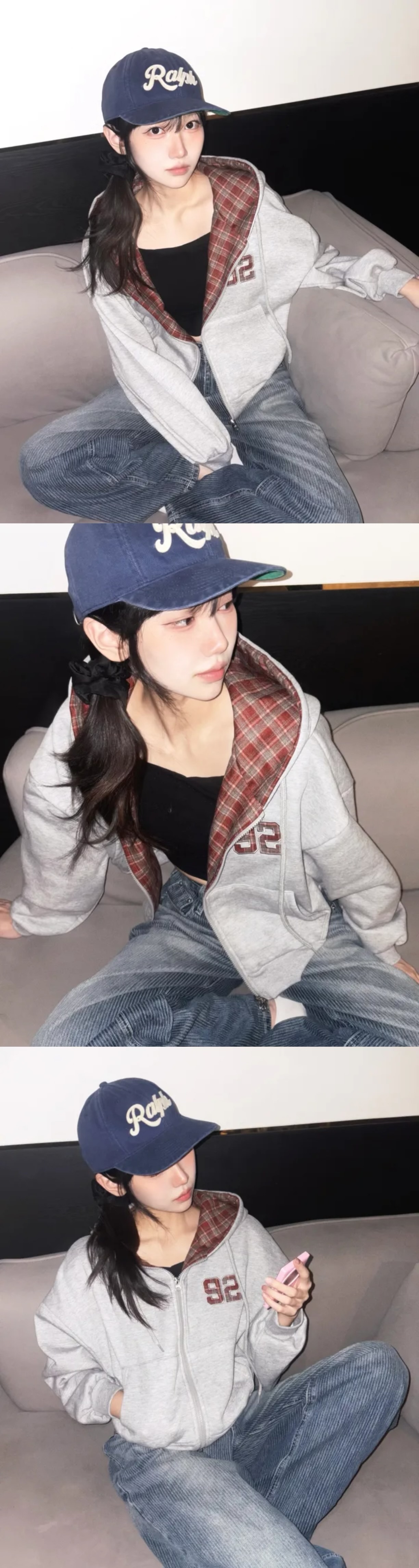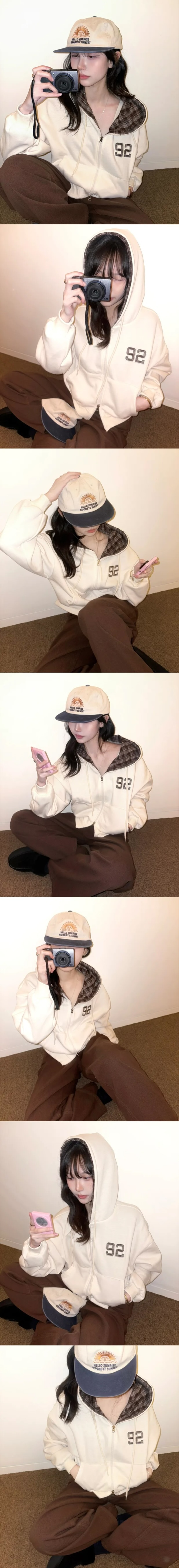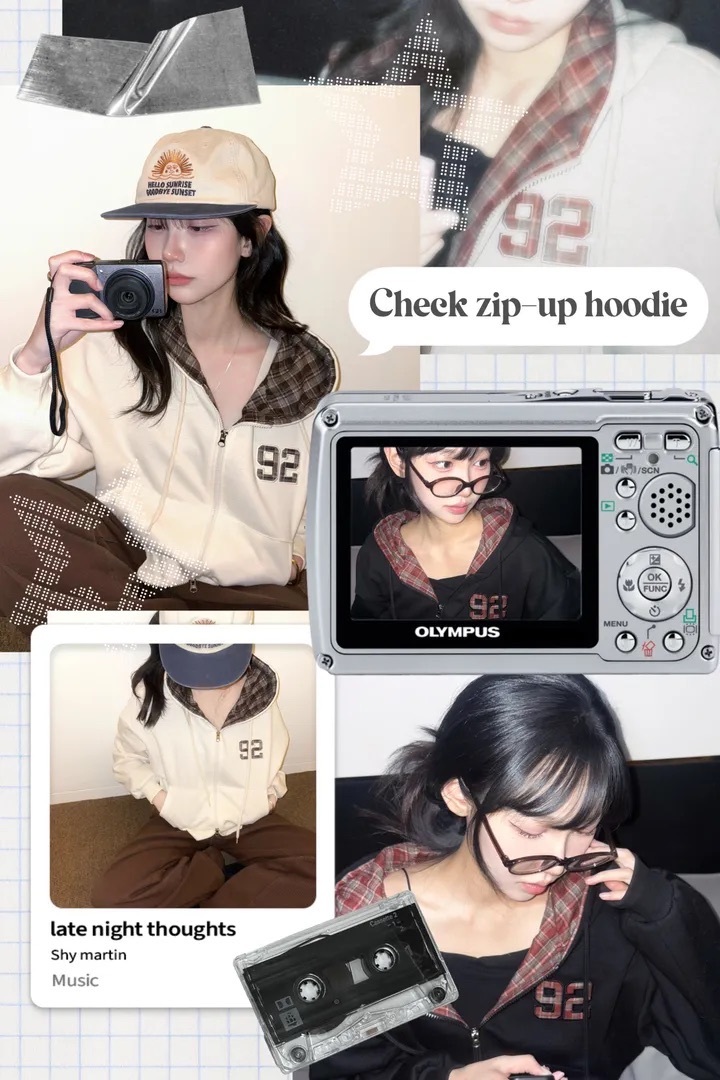 【優惠預訂】韓國92格紋連帽拉鍊外套(5色)