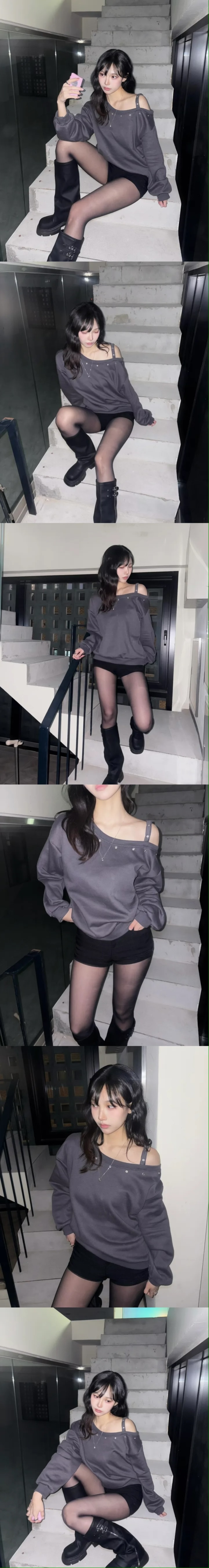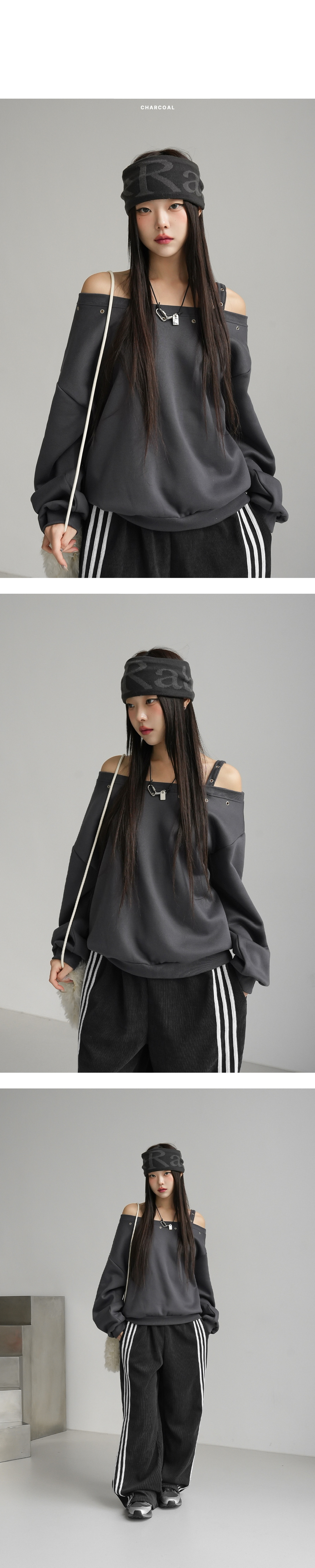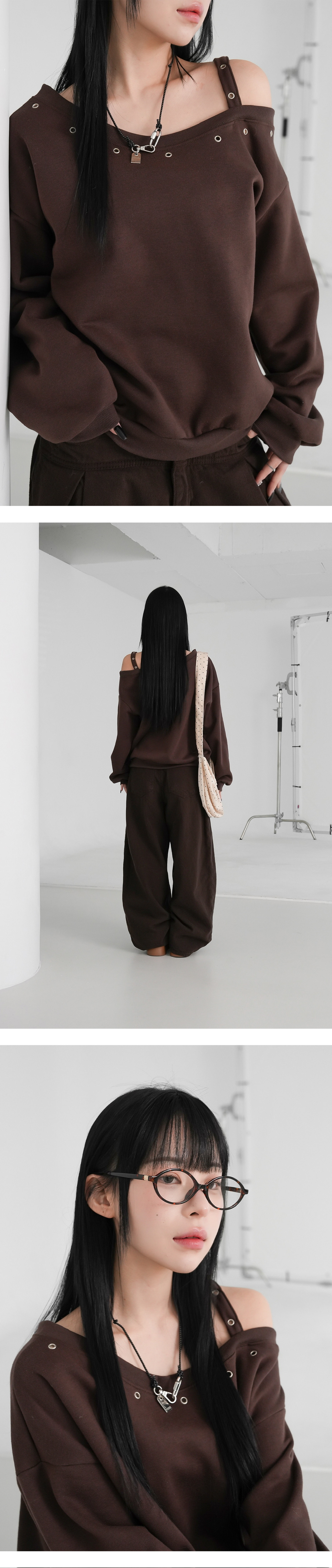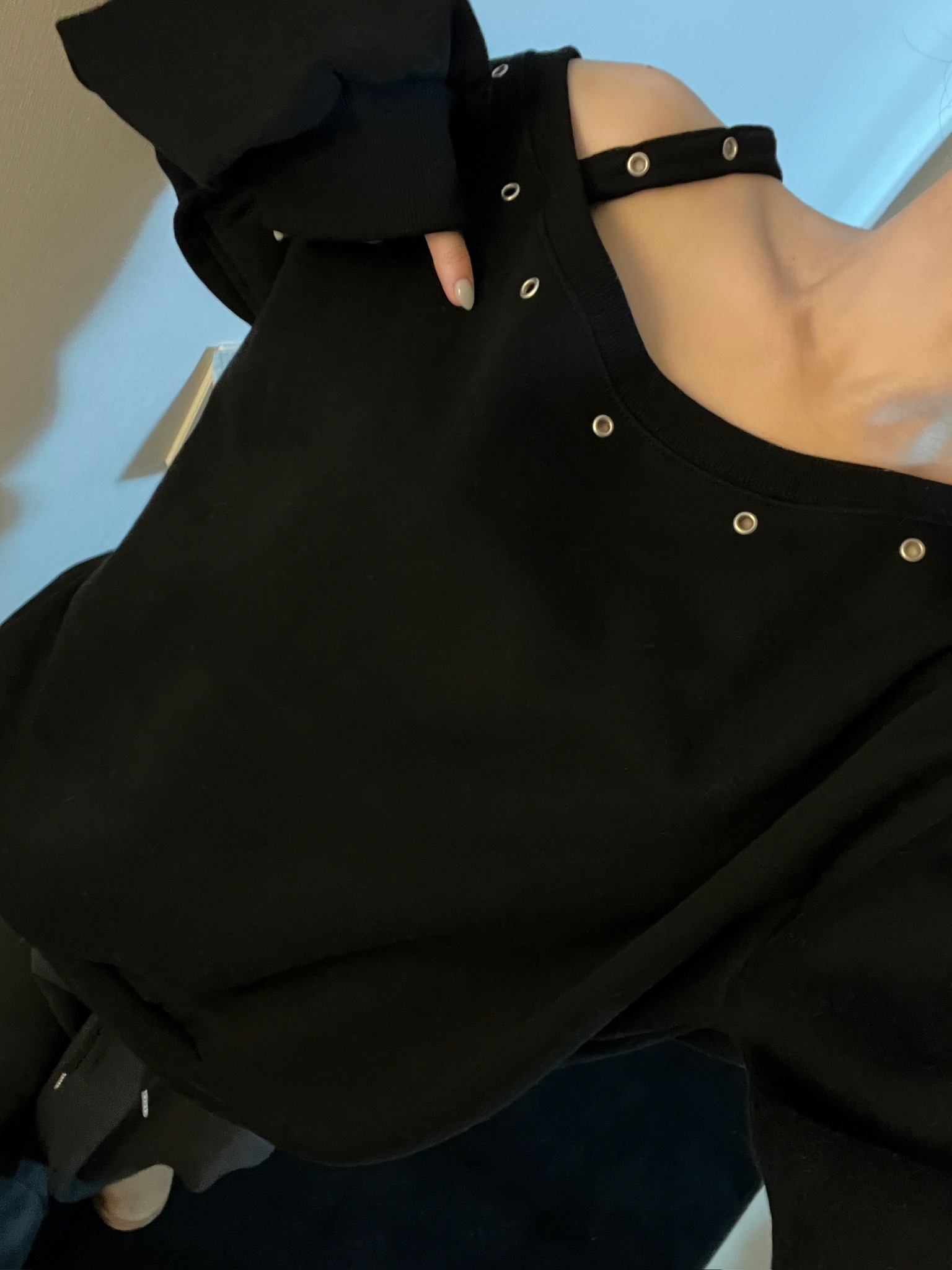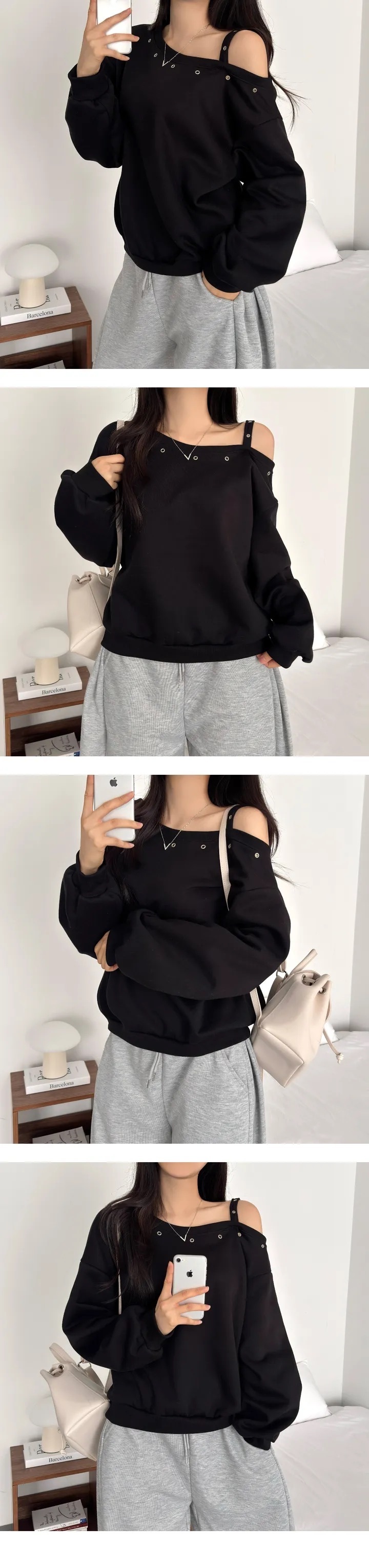 【優惠預訂】韓國縷空單肩帶衛衣(4色)
