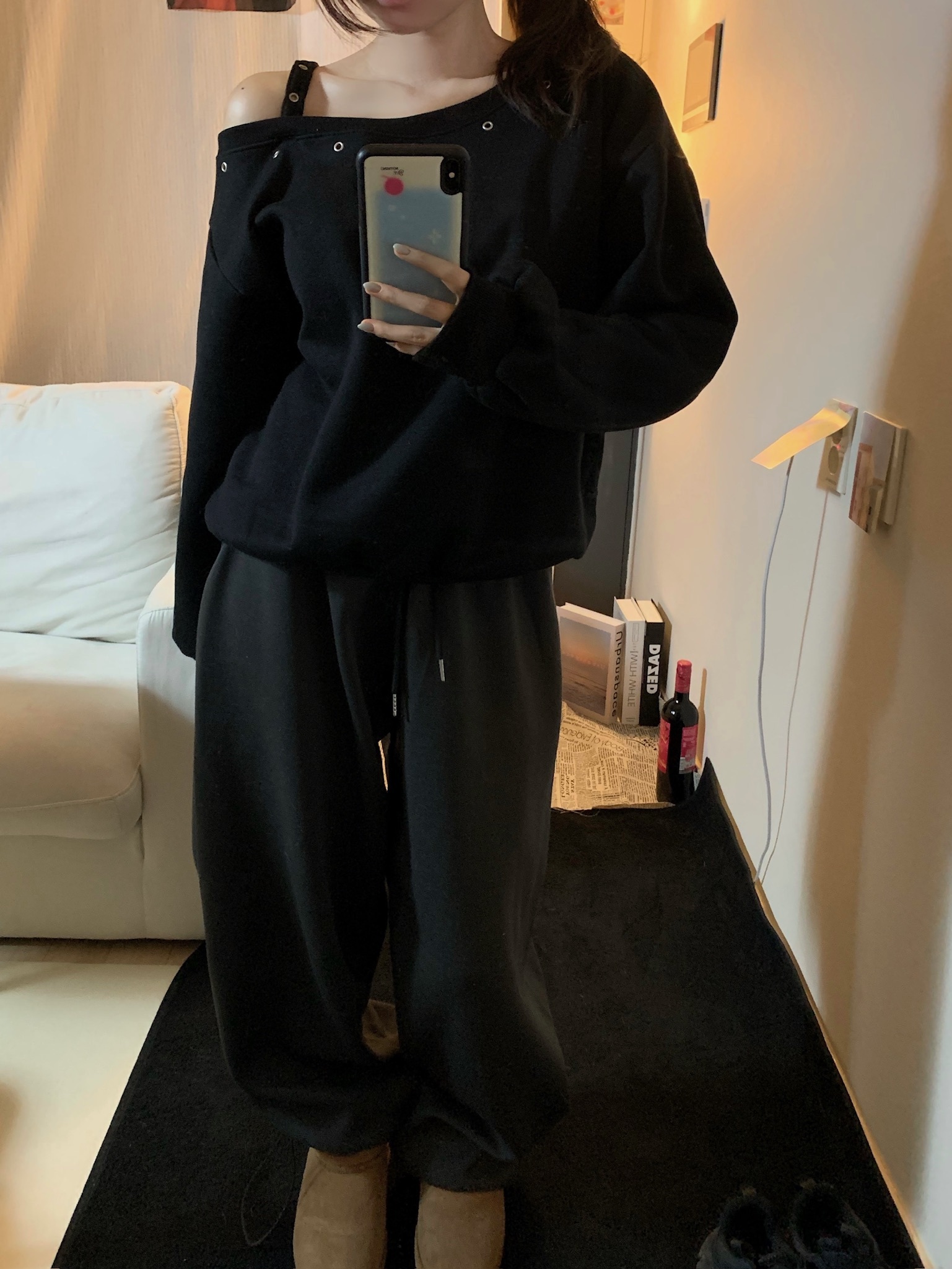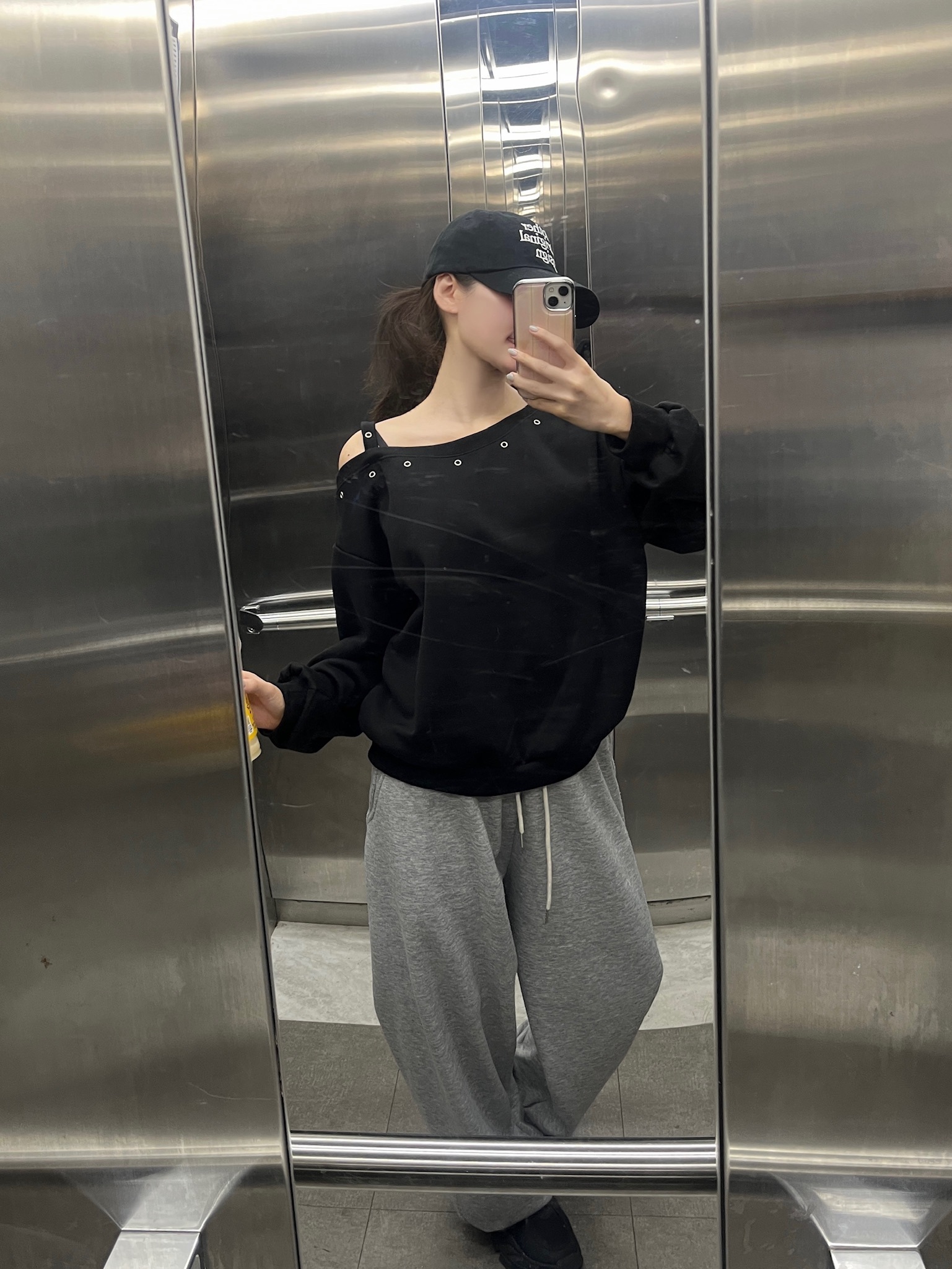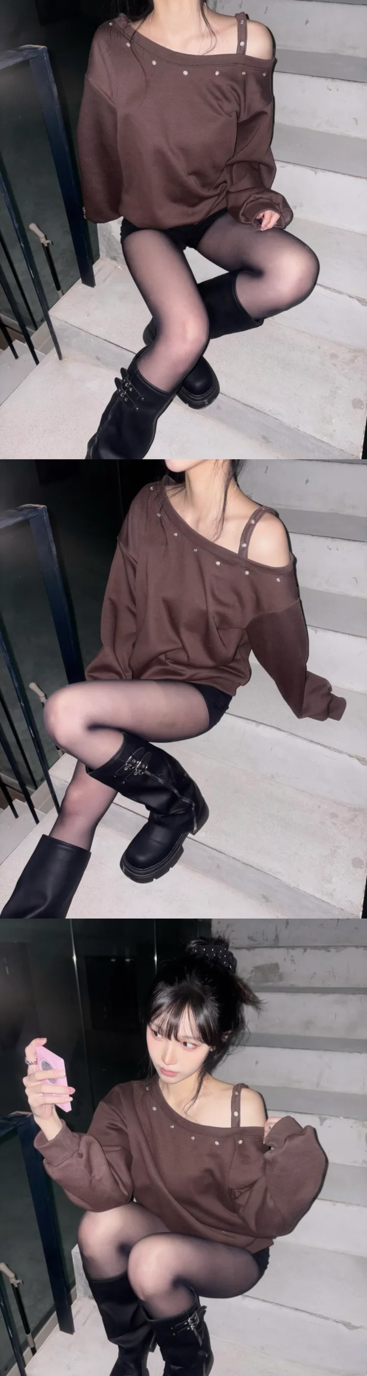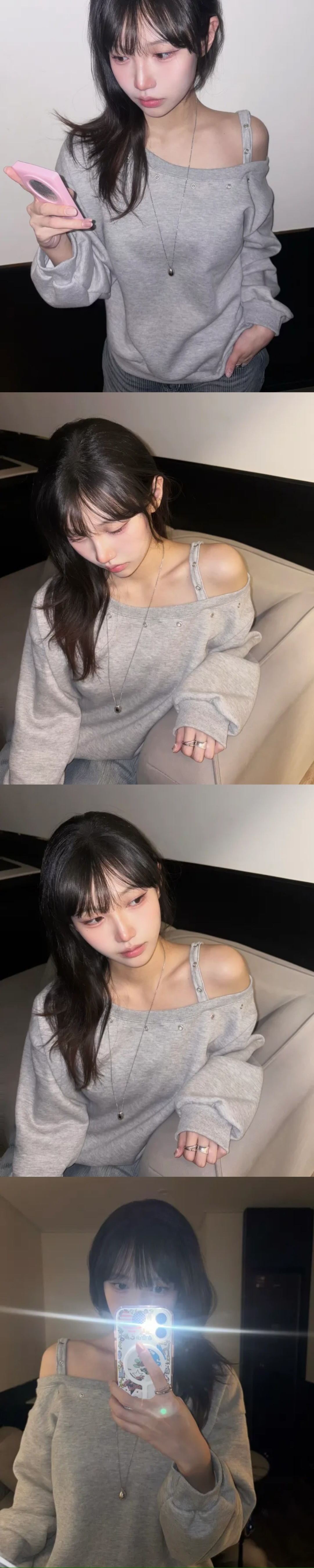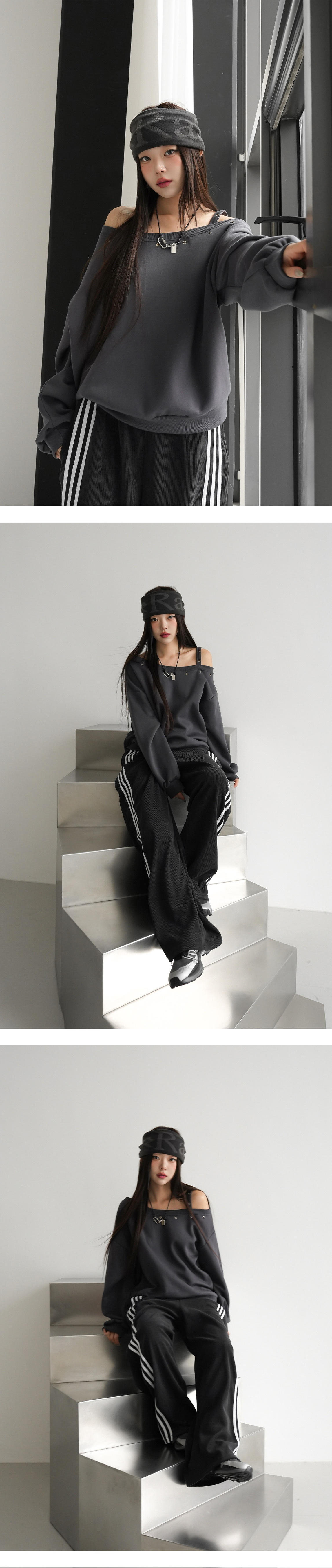 【優惠預訂】韓國縷空單肩帶衛衣(4色)