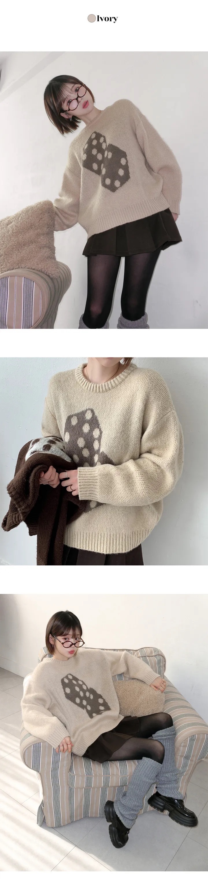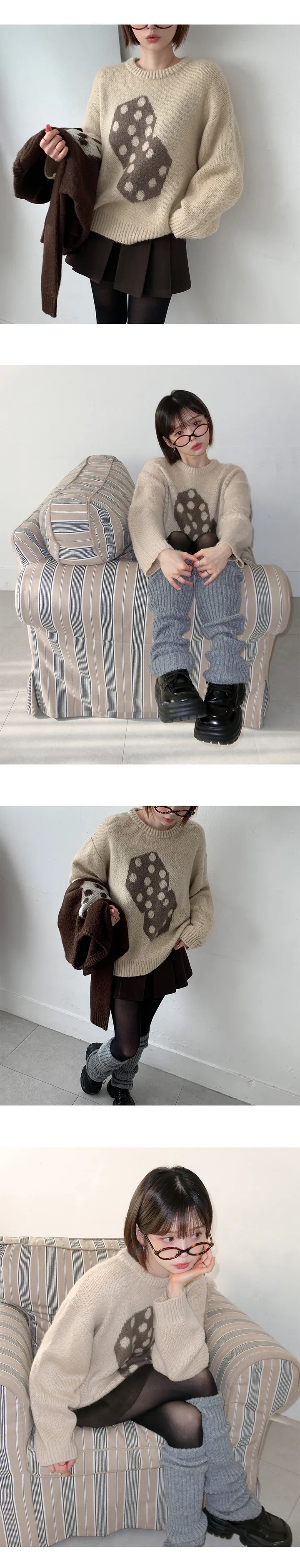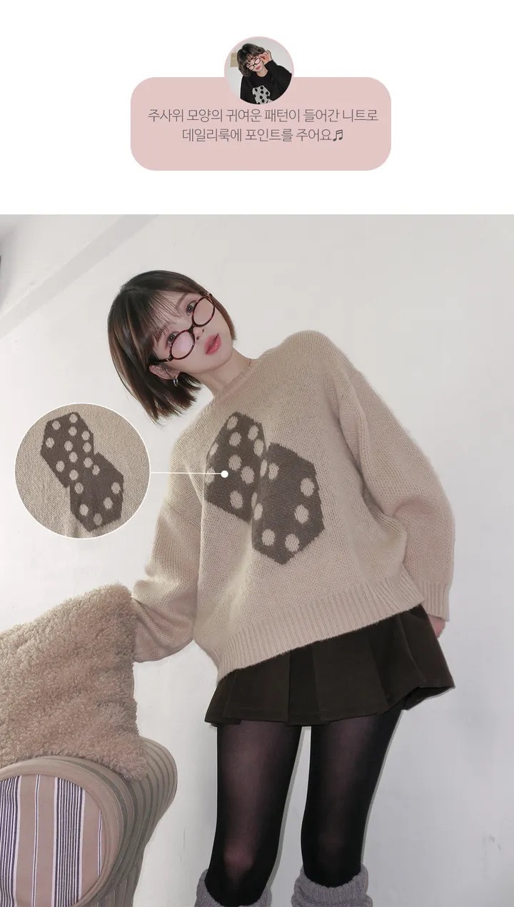 【優惠預訂】韓國骰仔圖案刷毛冷衫(4色)