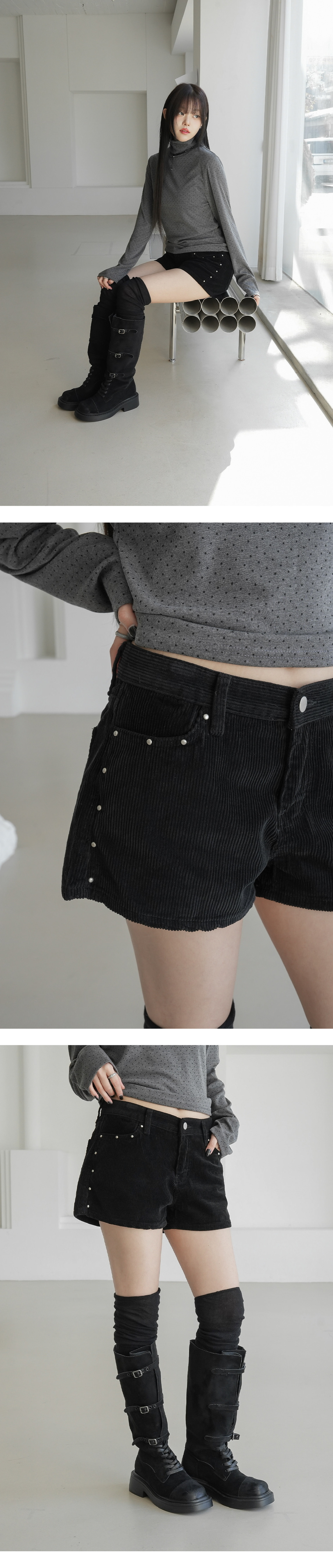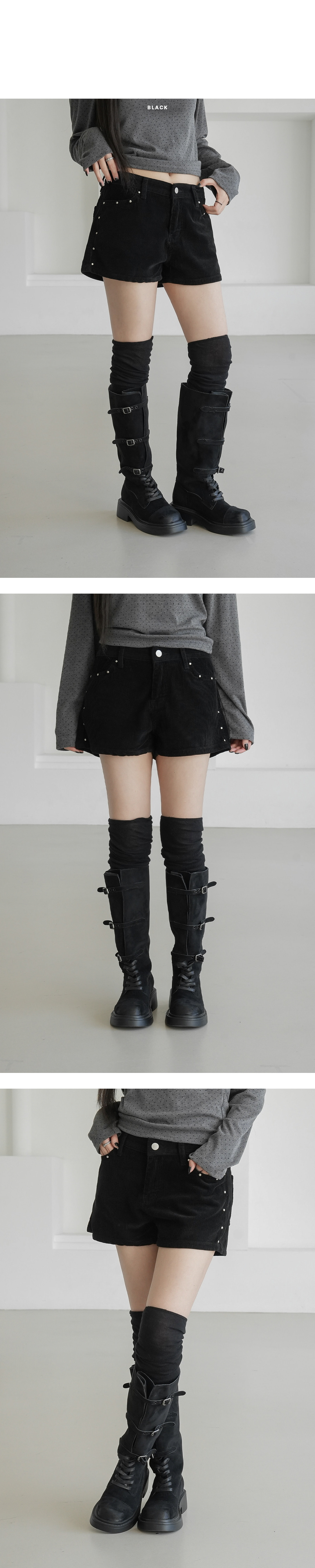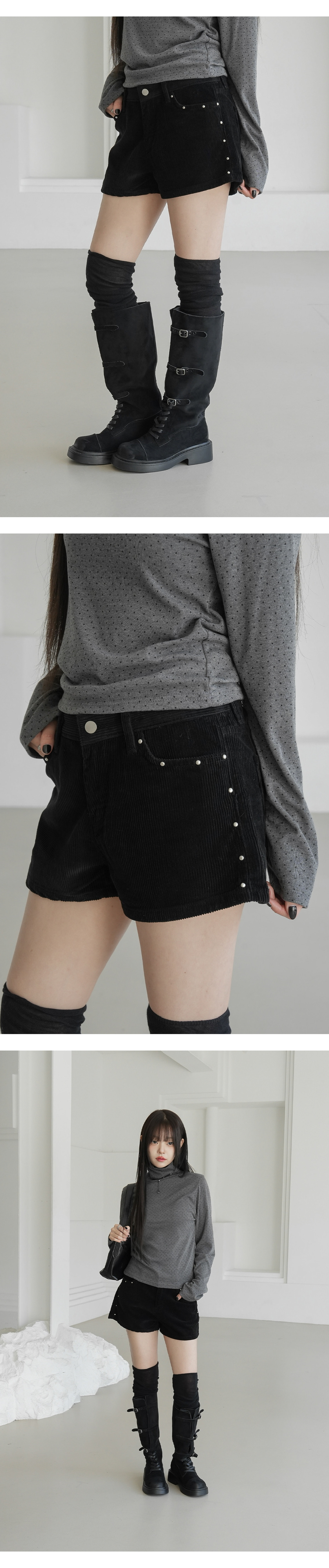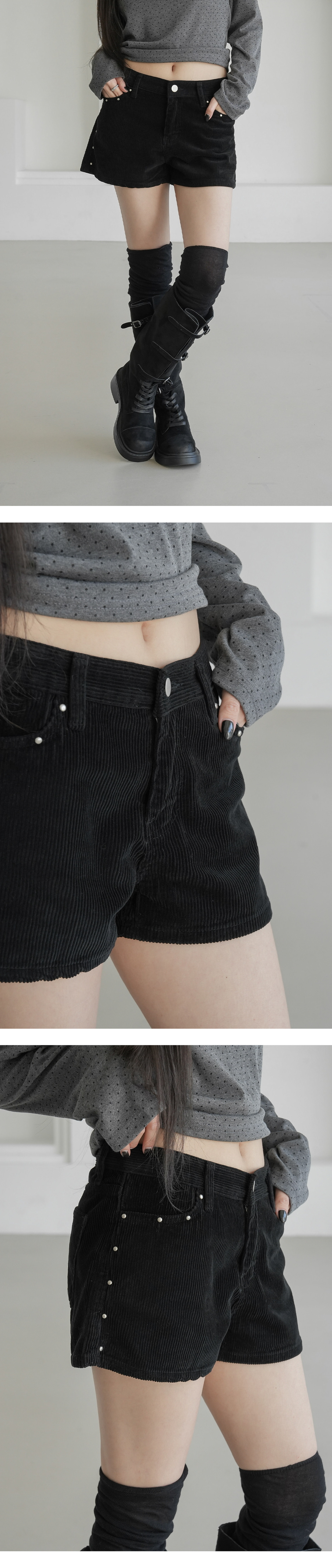 【優惠預訂】韓國燈芯絨窩釘短褲(3色)
