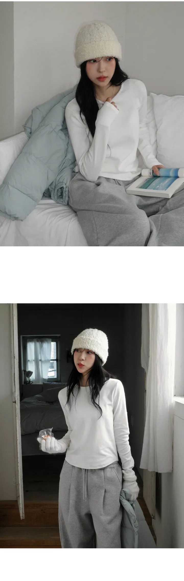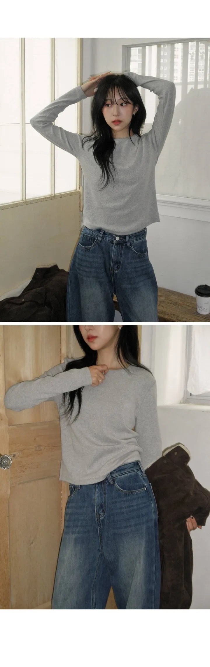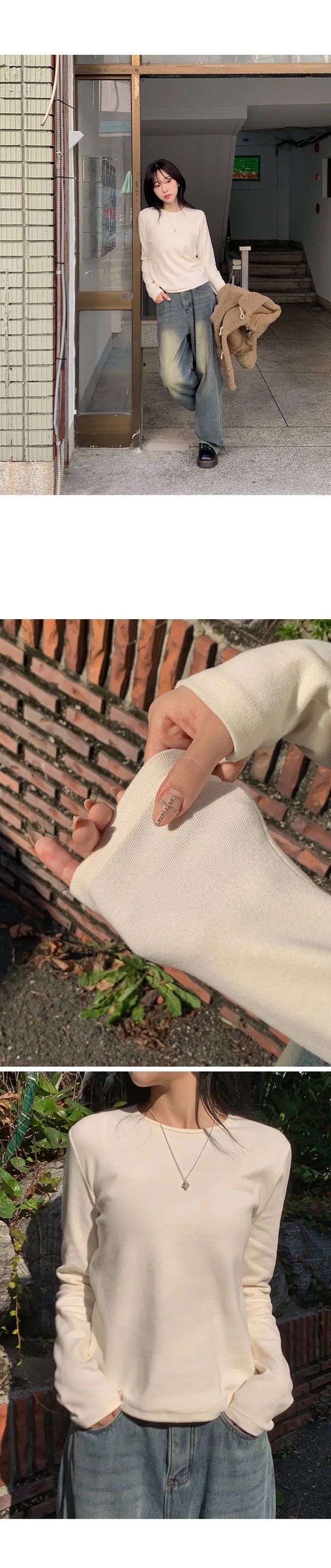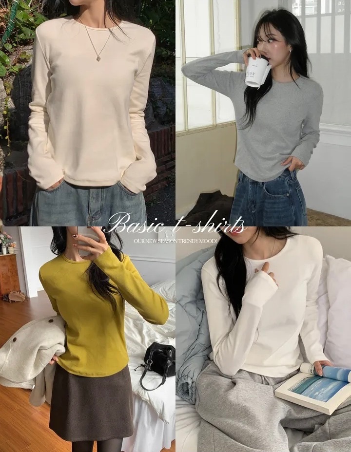 【優惠預訂】韓國圓領厚實純色長袖TEE(8色)