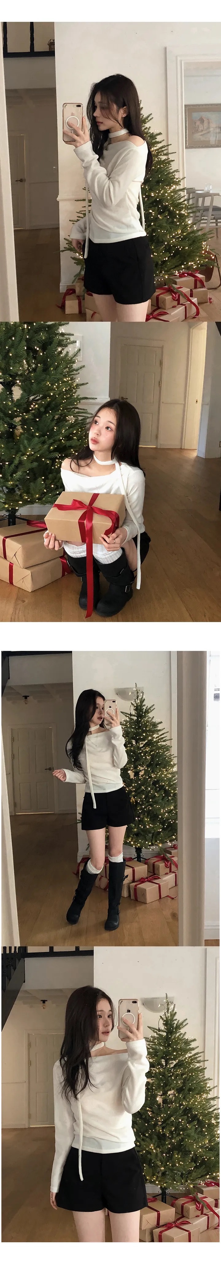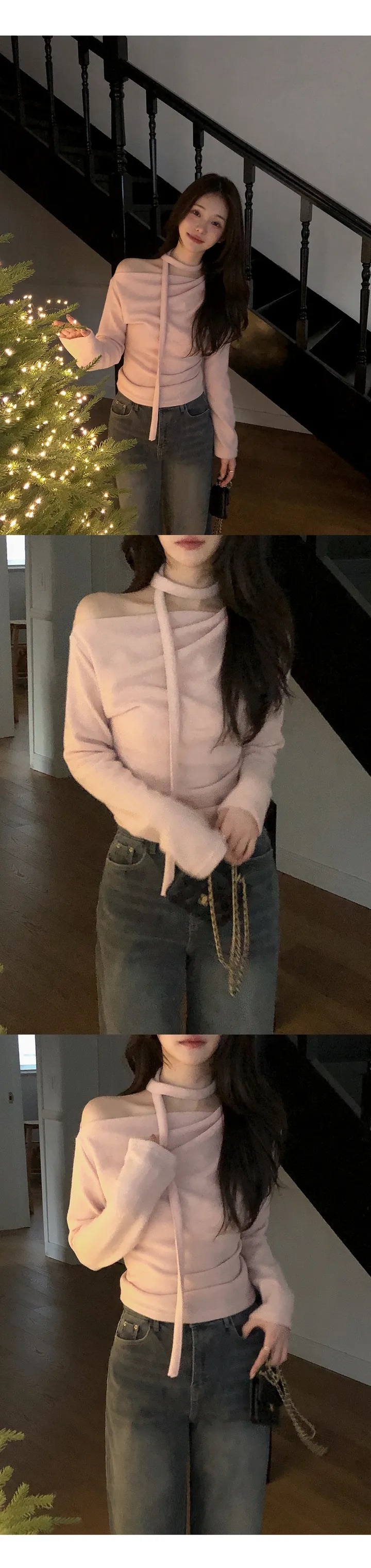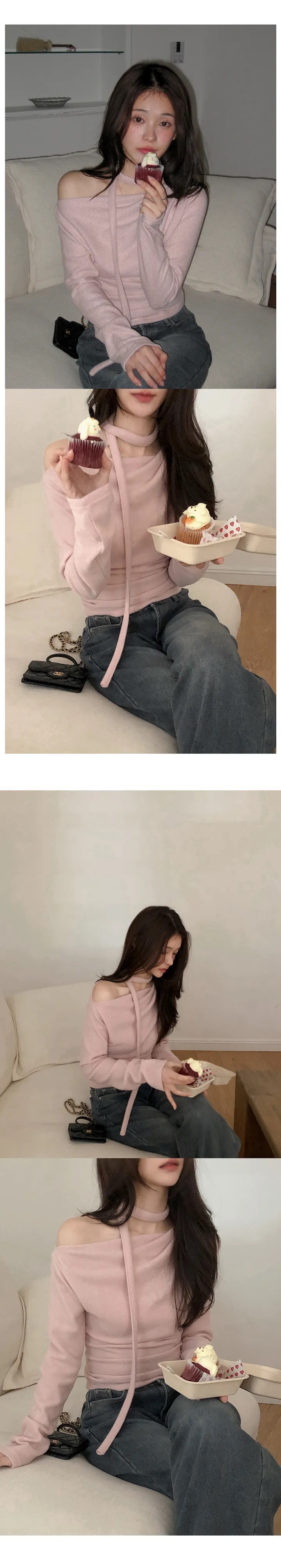 【優惠預訂】韓國絨款領帶垂感上衣(5色)