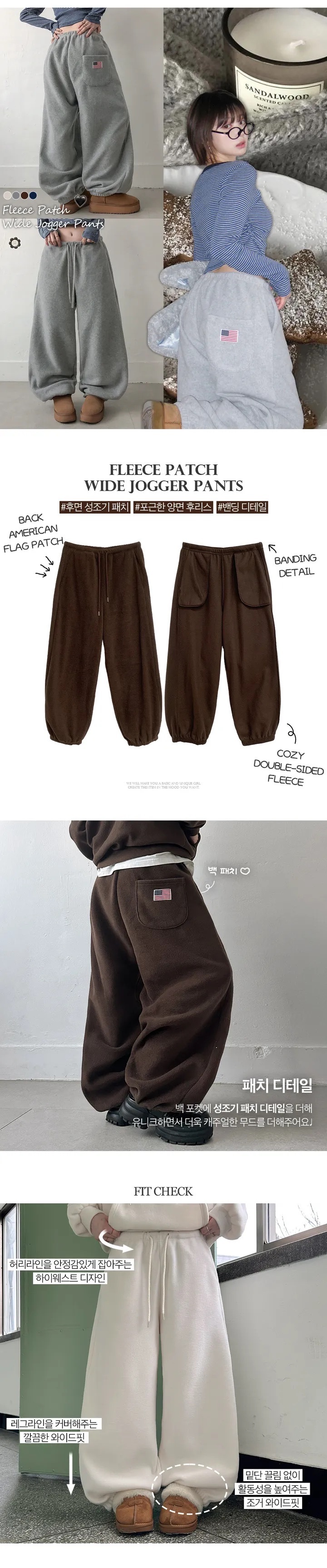 【優惠預訂】KR FLEECE PATCH WIDE JOGGER PANTS(4色)