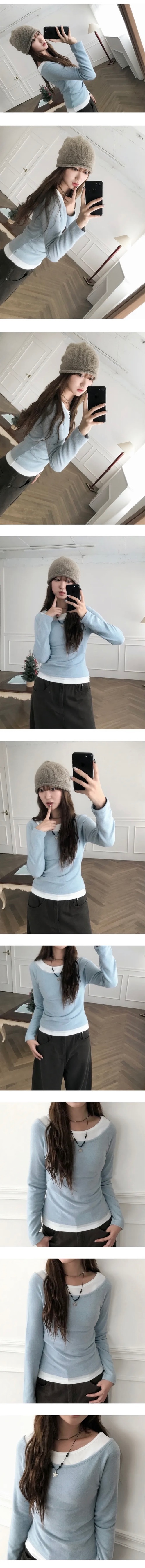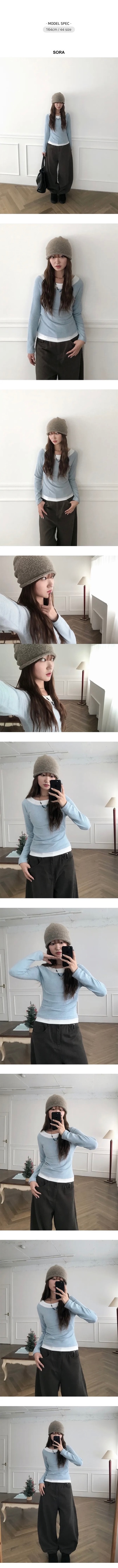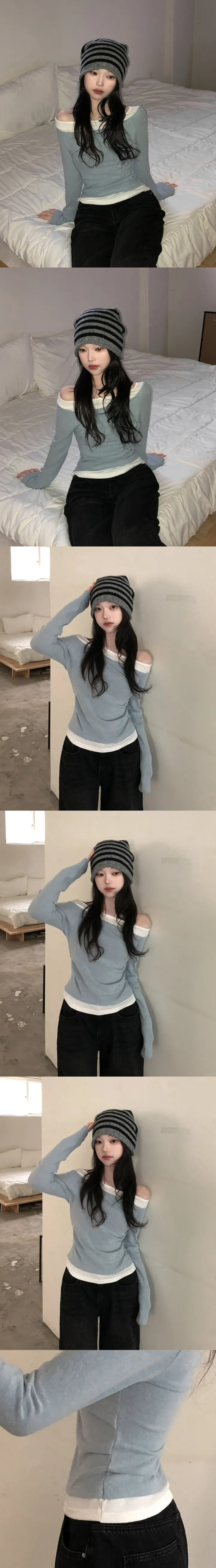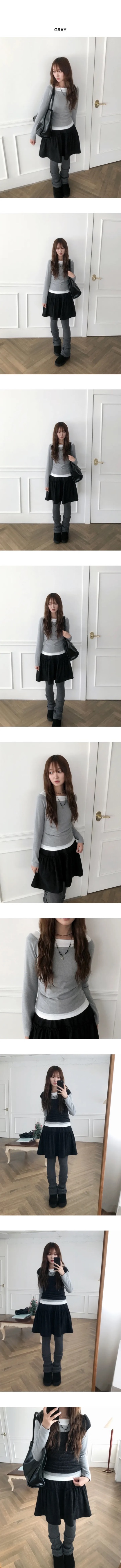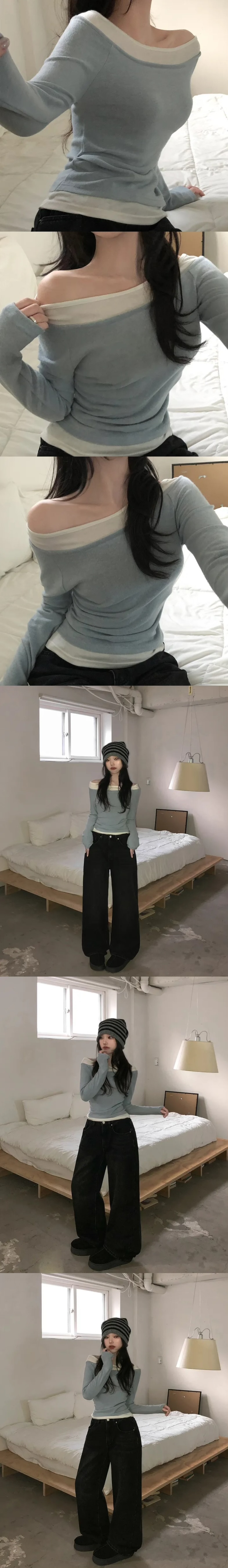 【優惠預訂】韓國絨毛船領分層皺摺上衣(4色)