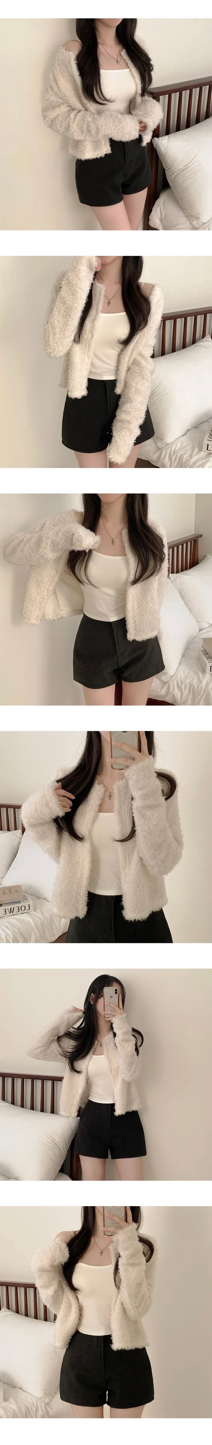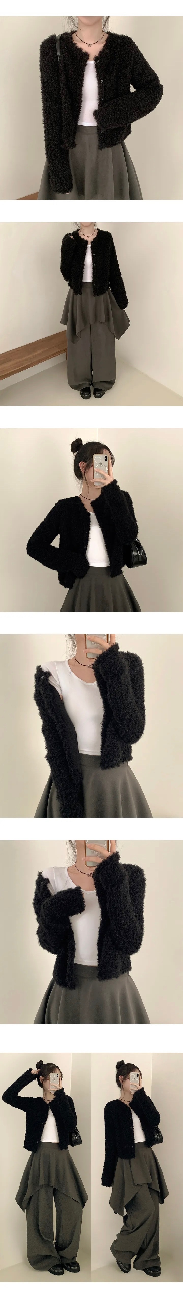 【24/12完額外95折優惠預訂】KR ROUND FUR BOUCLE CROPPED CARDIGAN(3色)