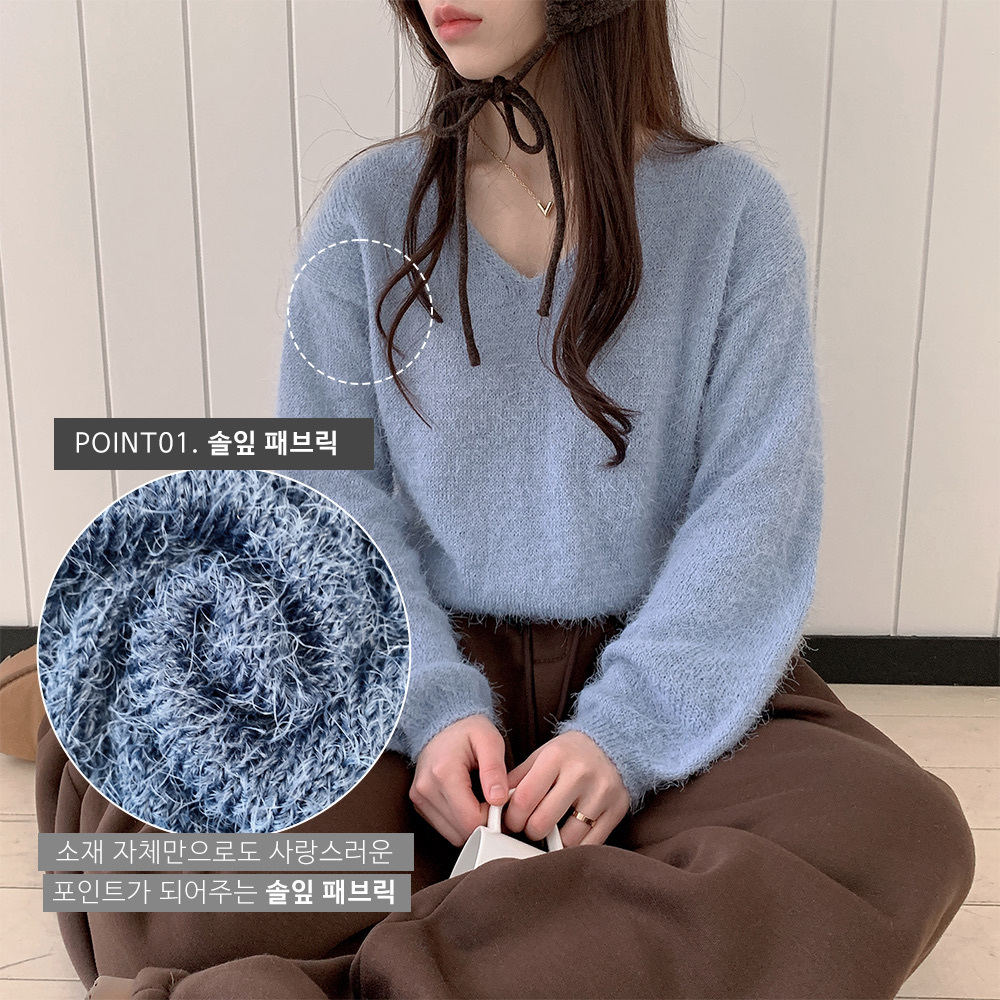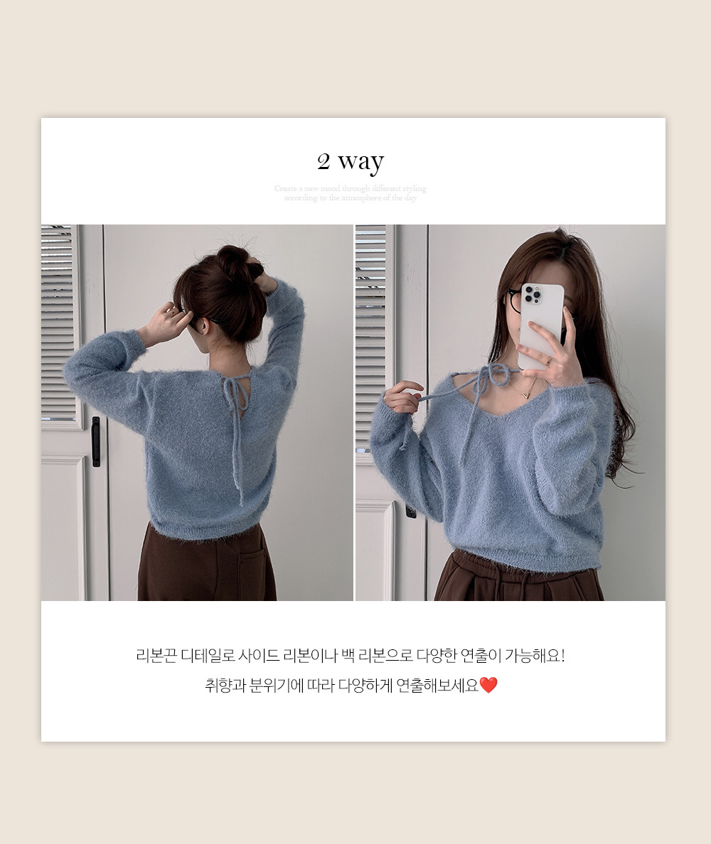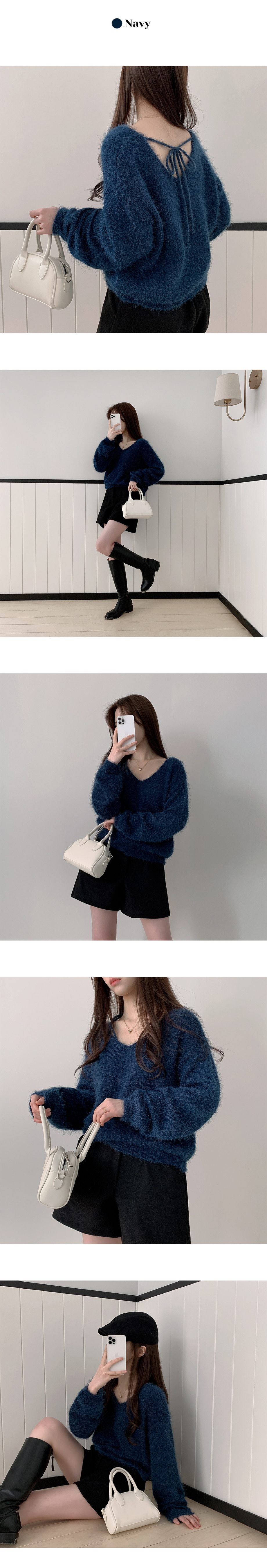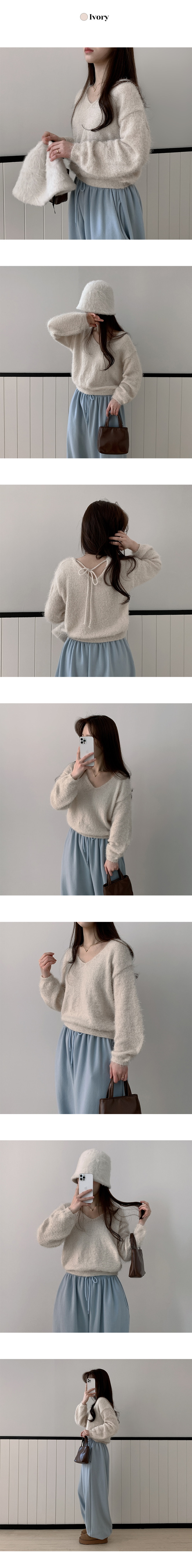 【優惠現貨】韓國馬海毛V領綁繩上衣(6色)