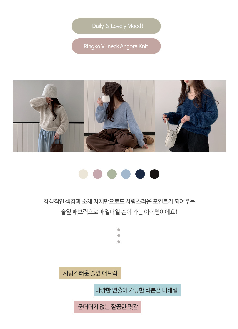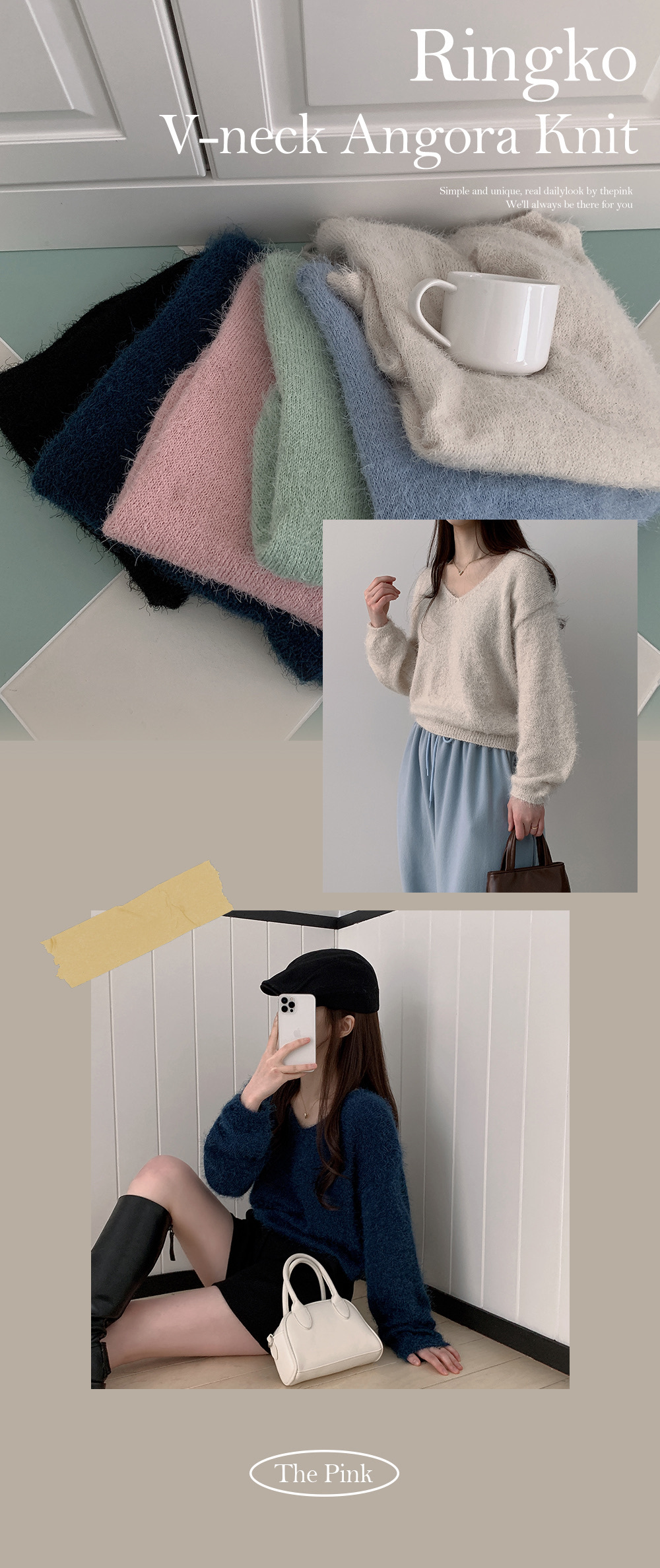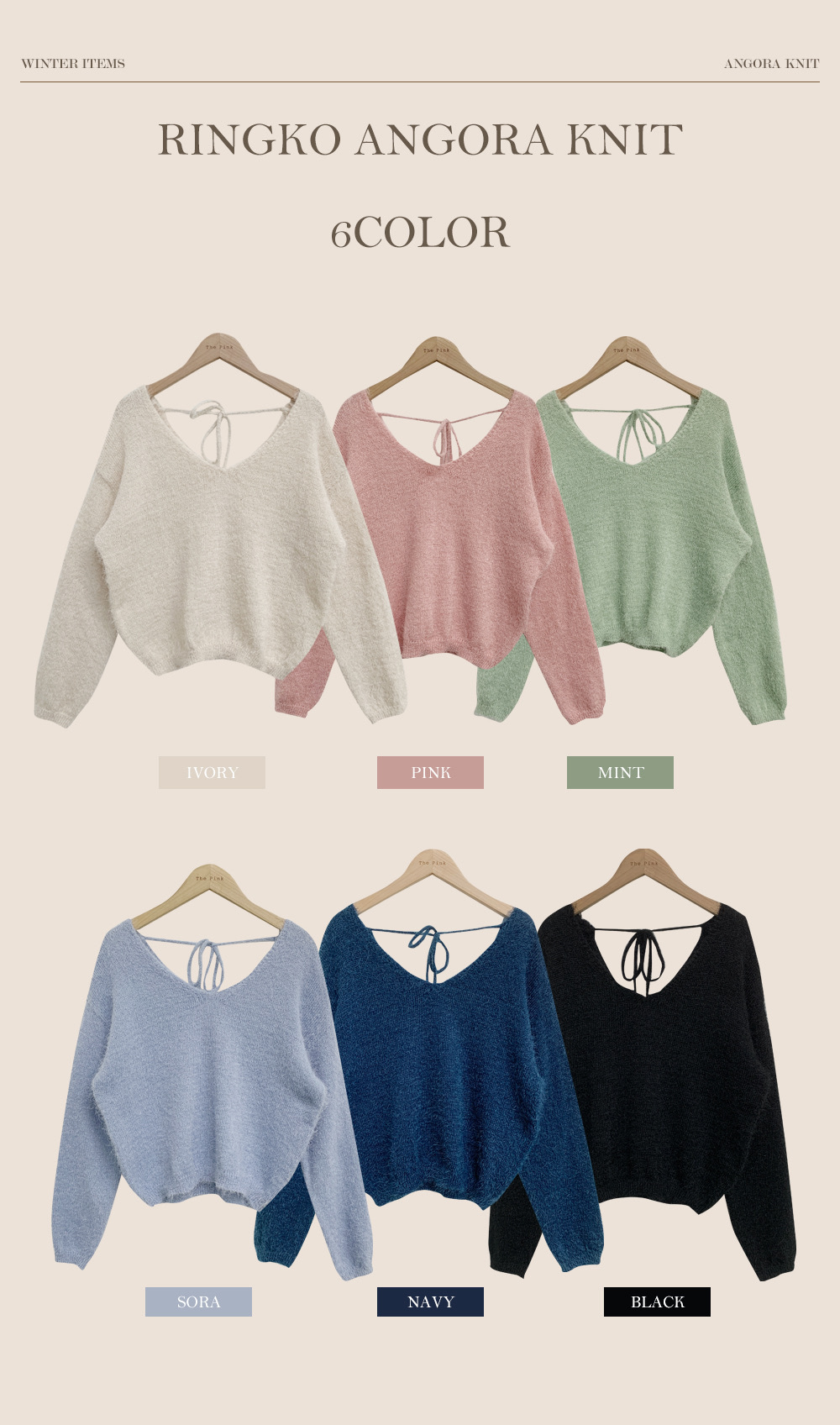 【優惠現貨】韓國馬海毛V領綁繩上衣(6色)