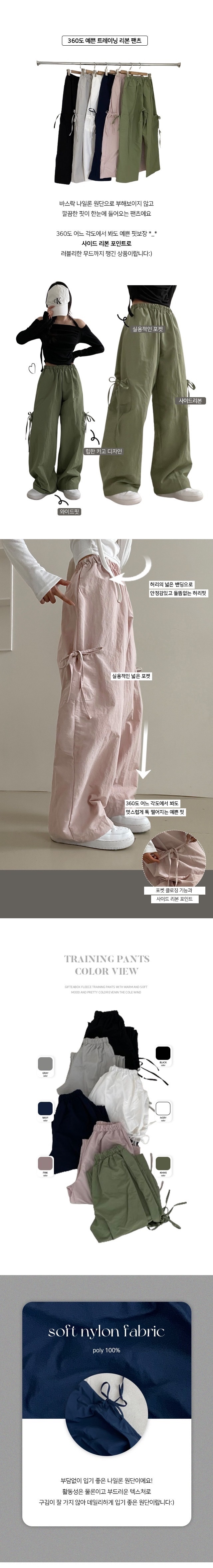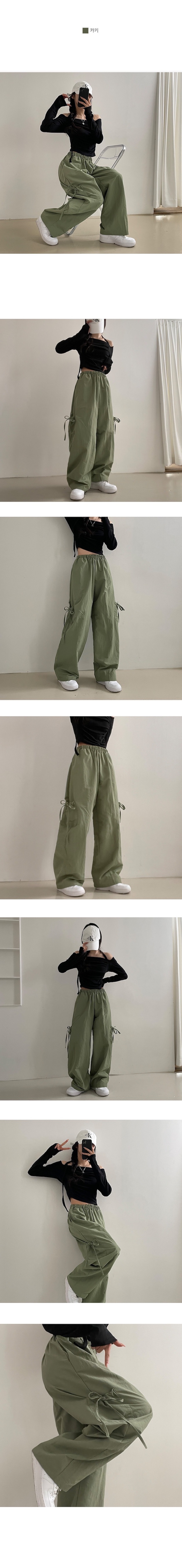【優惠預訂】KR RIBBON STRING WIDE CRUNCHY NYLON CARGO PANTS(6色)