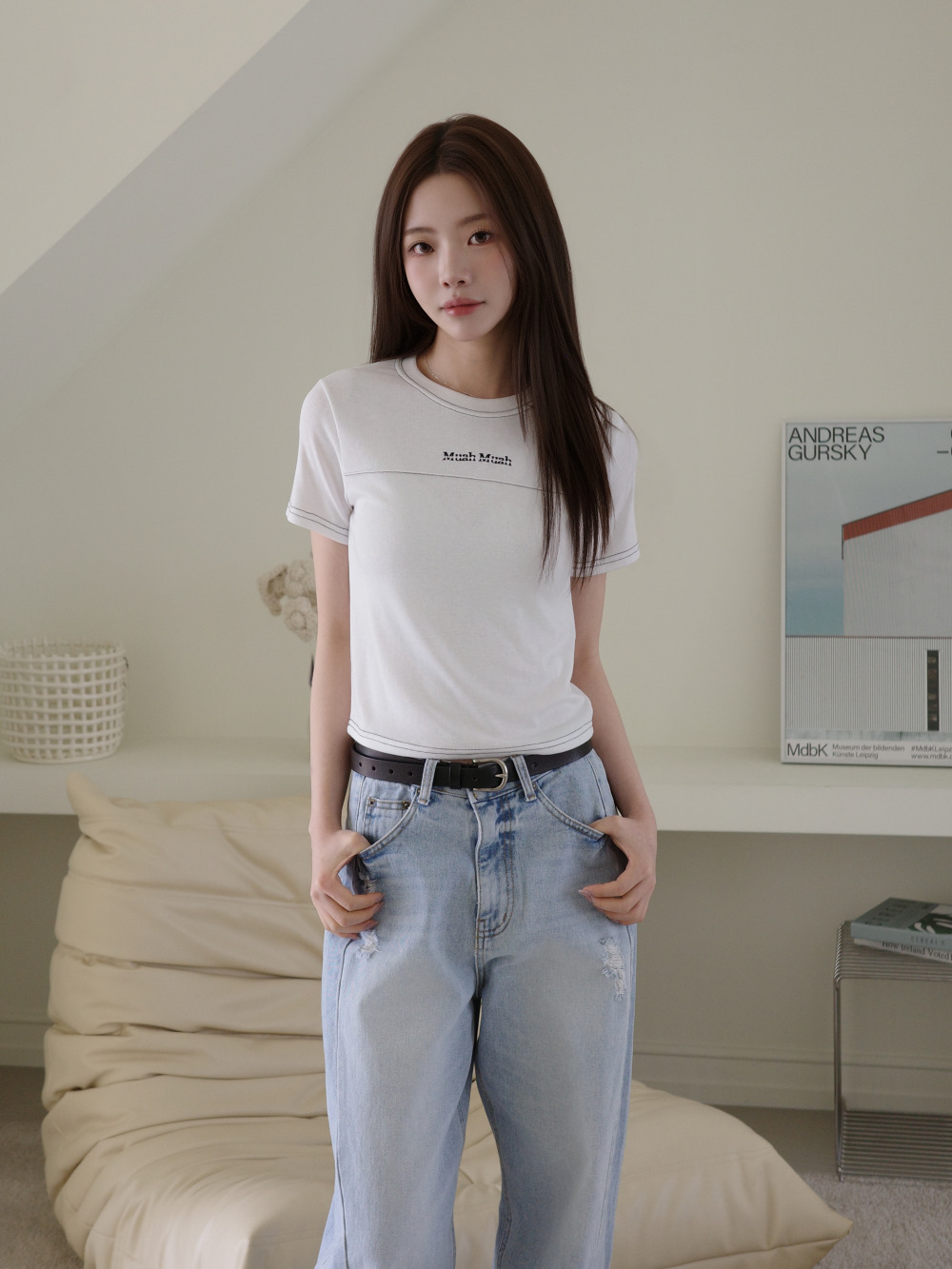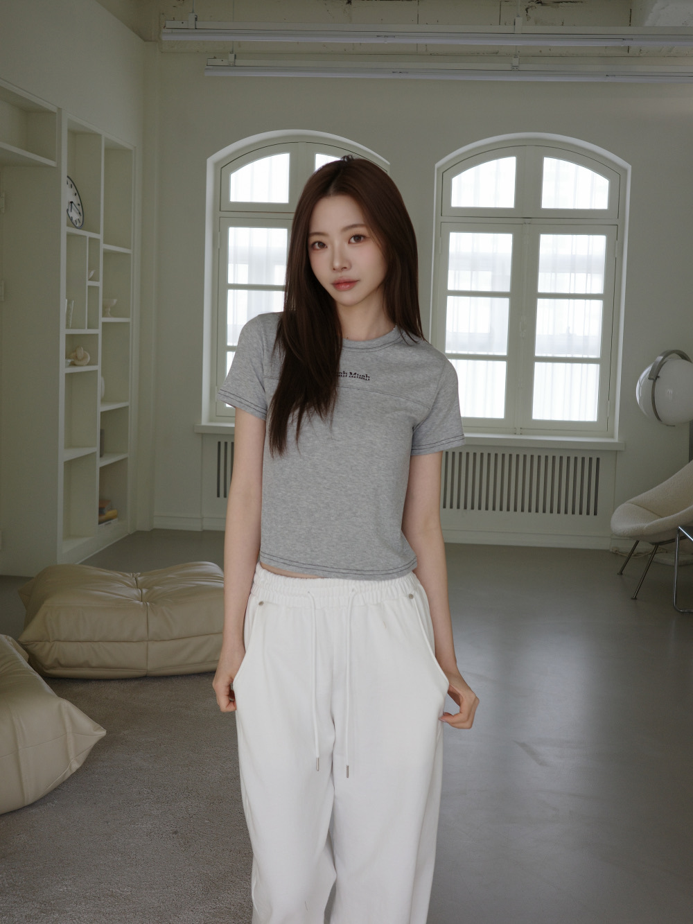 【29.3截單!限時優惠預訂】韓國MUAH MUAH CROP POINT PINTUCK HALF T-SHIRT(3色)