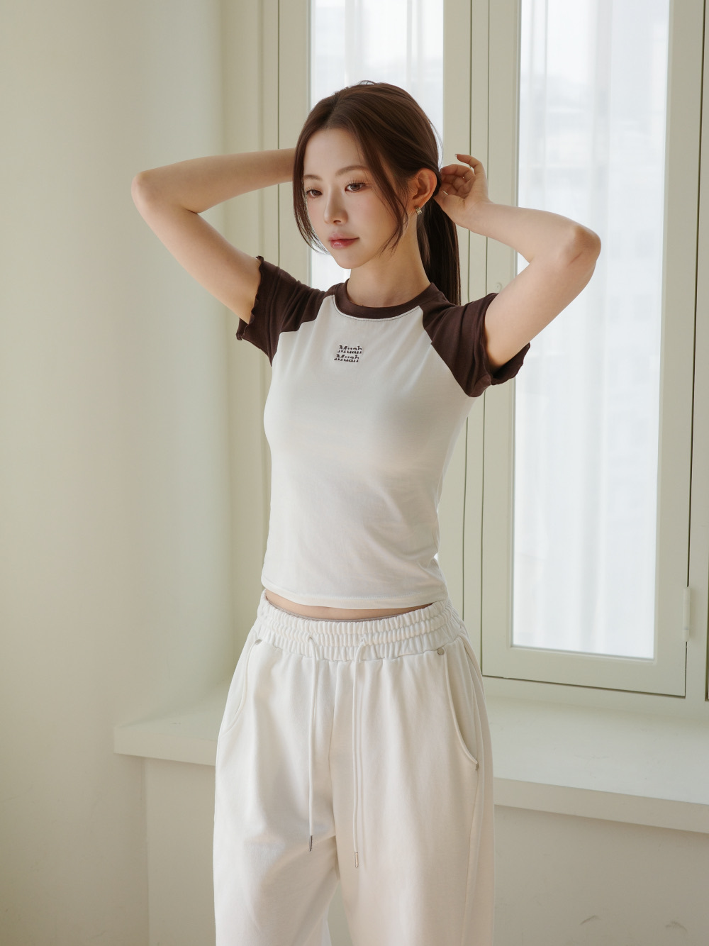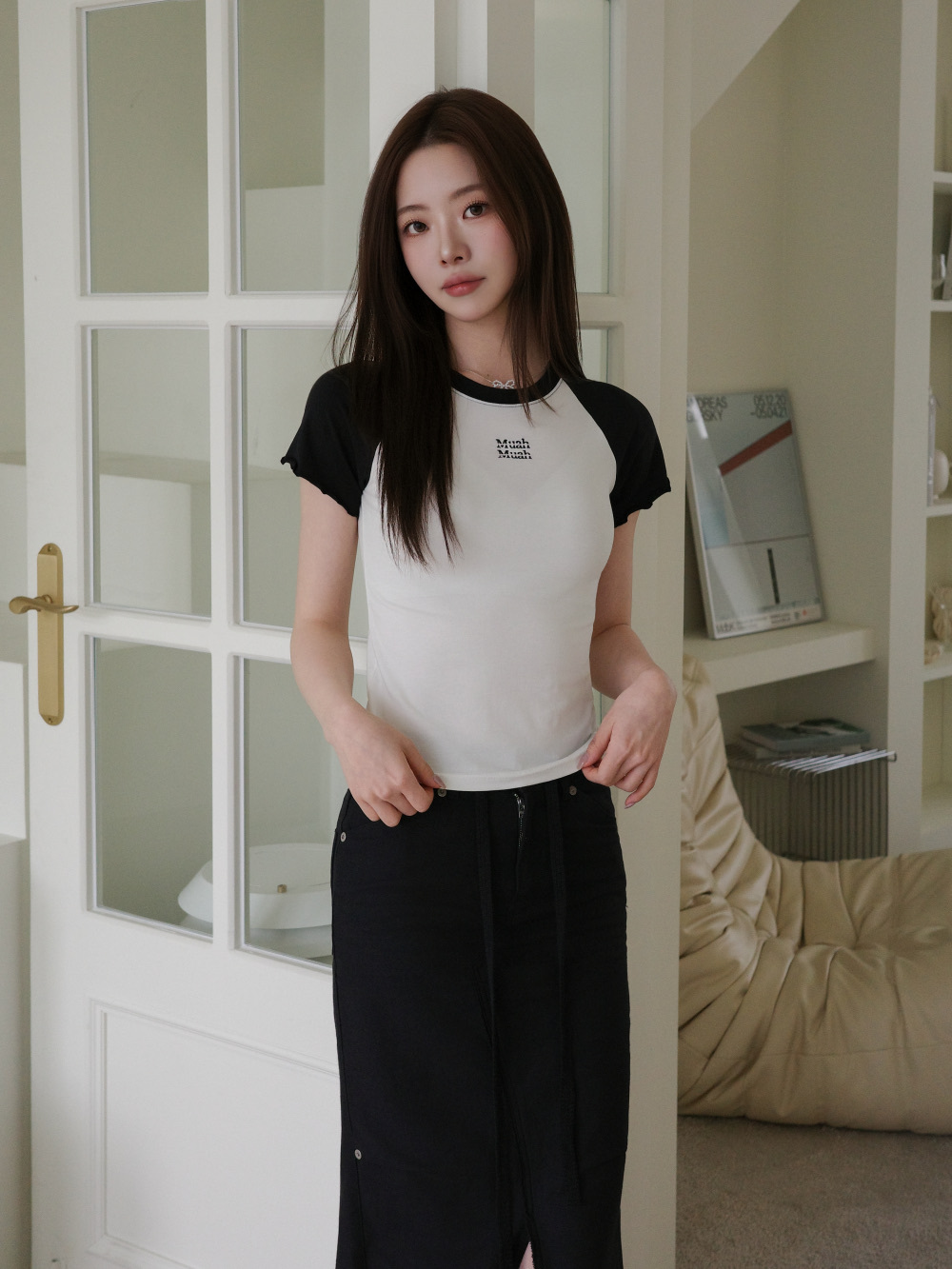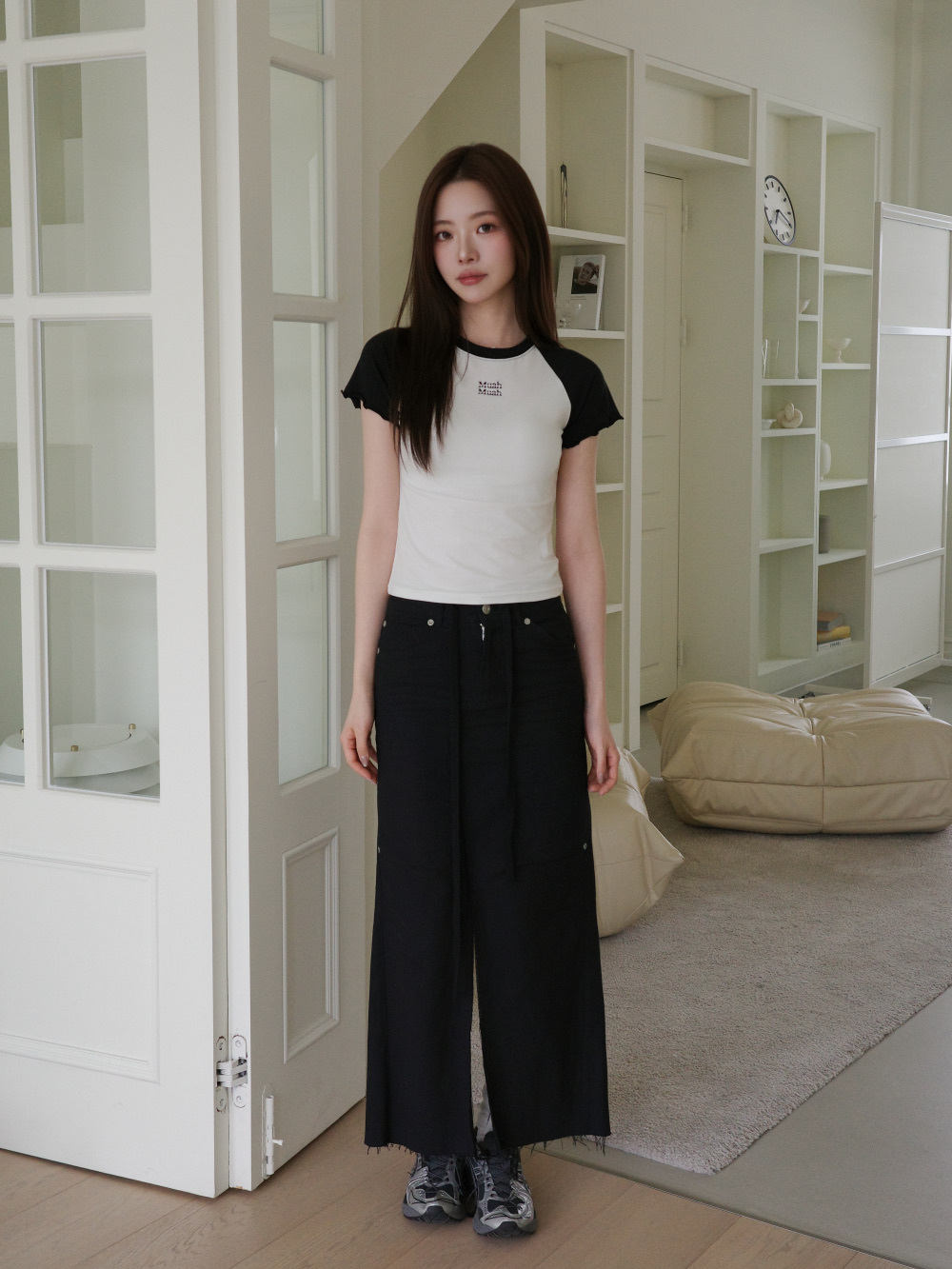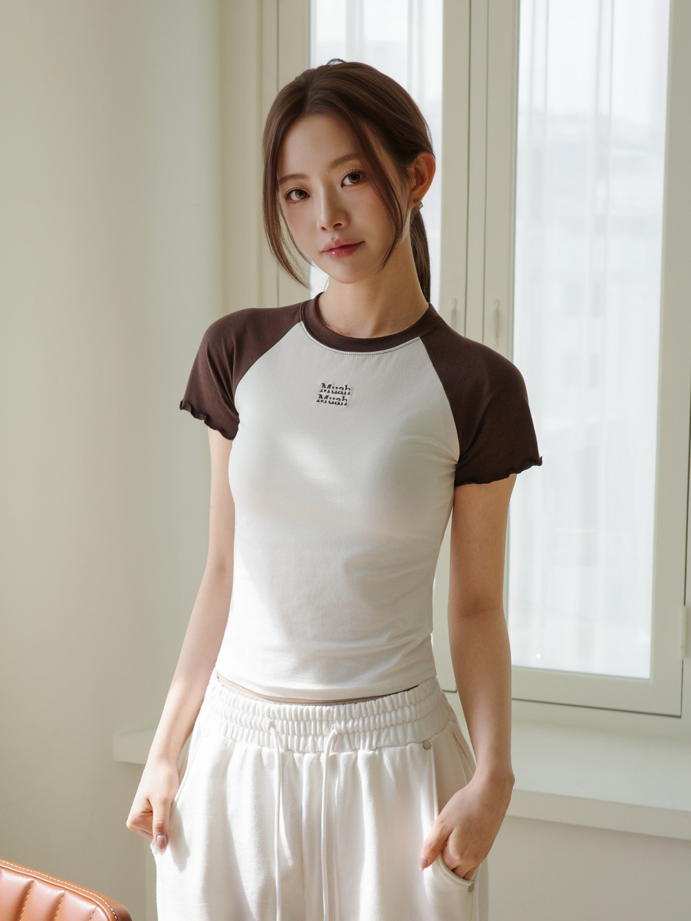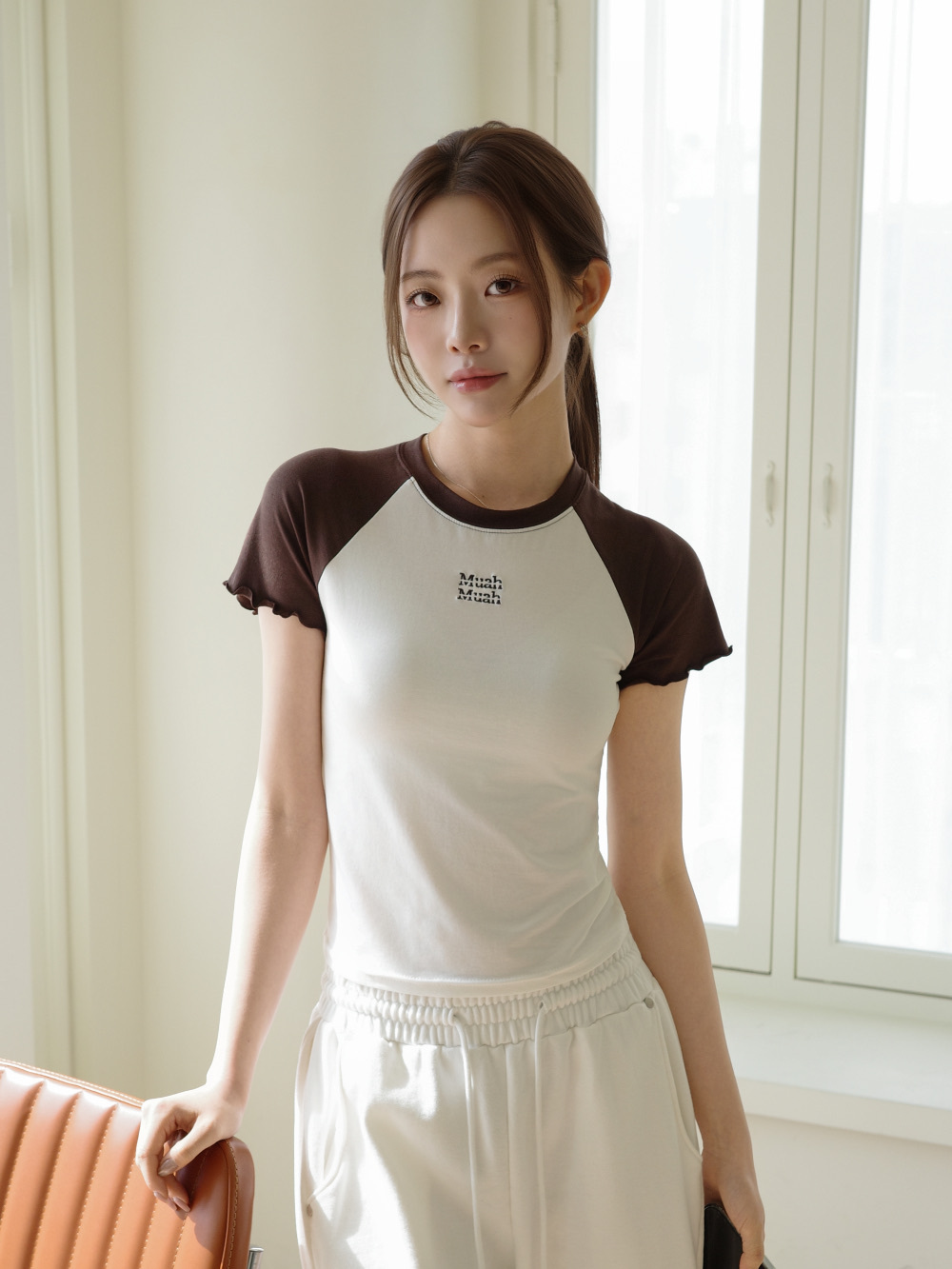 【29.3截單!限時優惠預訂】韓國MUAH MUAH FRILL COTTON MODAL HALF T-SHIRT(3色)