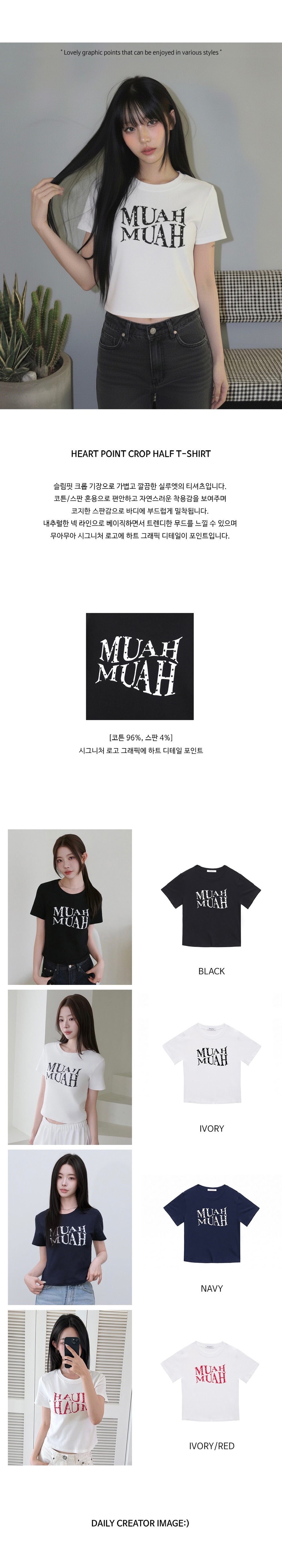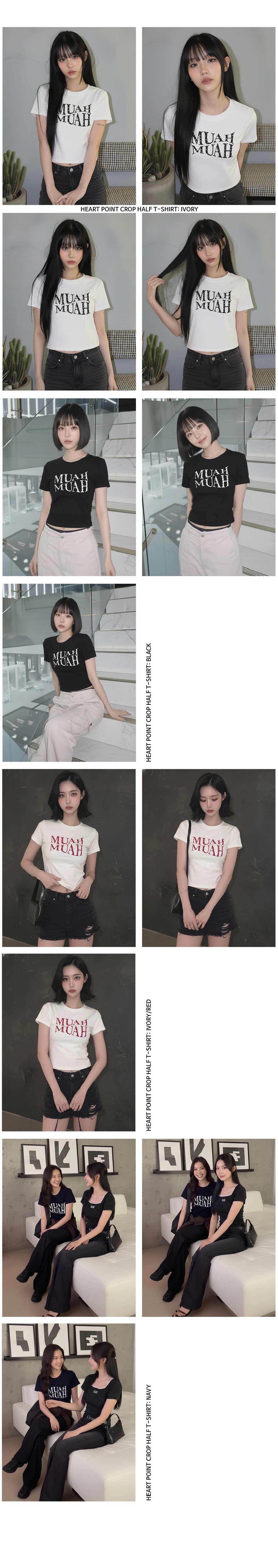 【3.5截單!限時優惠預訂】韓國MUAH MUAH HEART POINT CROP HALF T-SHIRT(4色)