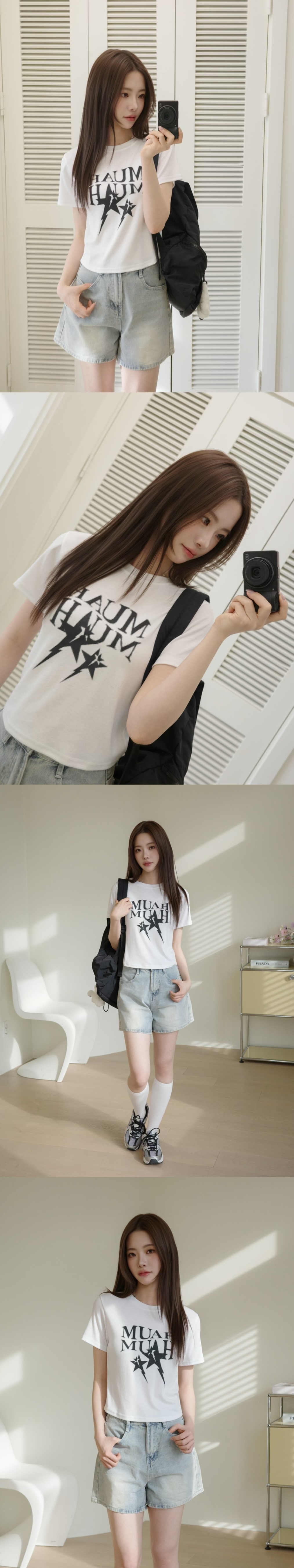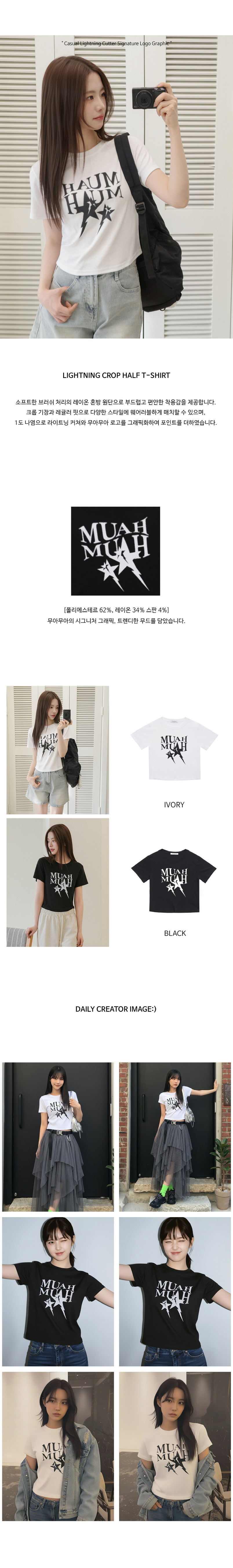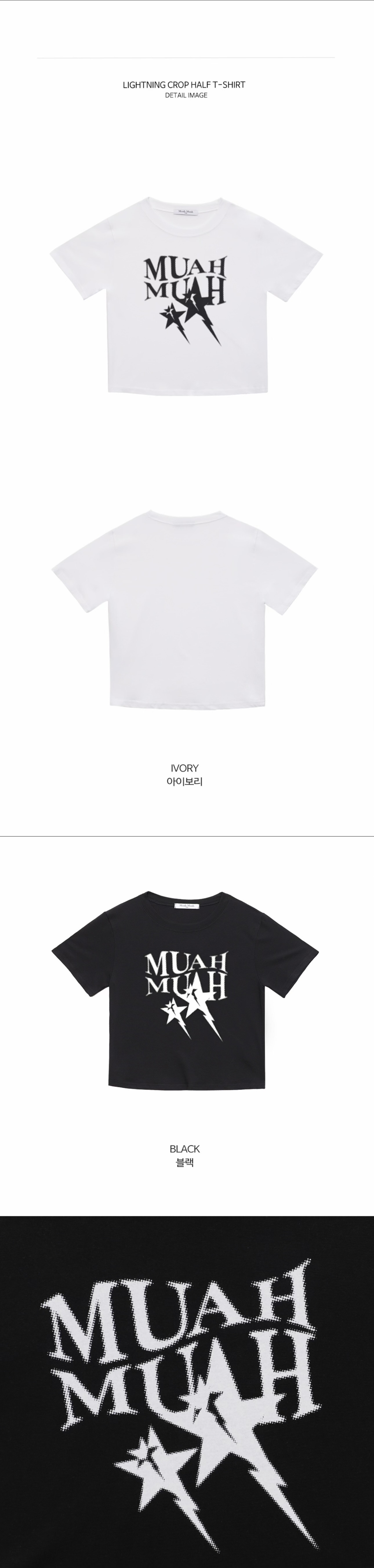 【19.4截單!限時優惠預訂】韓國MUAH MUAH LIGHTNING CROP HALF T-SHIRT(2色)