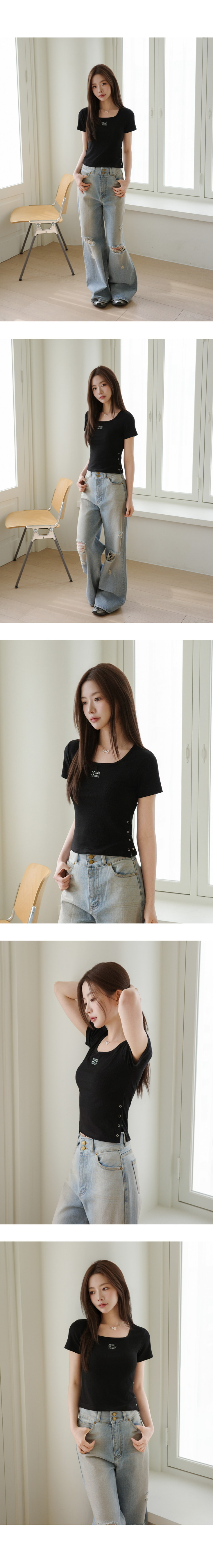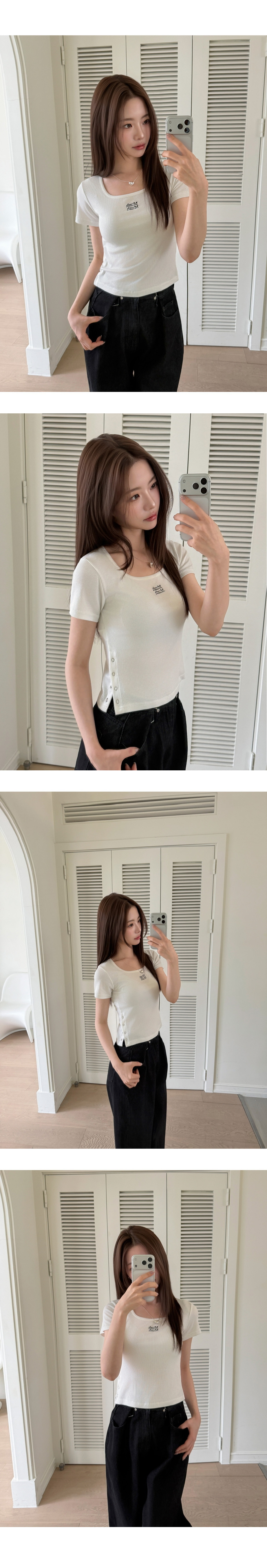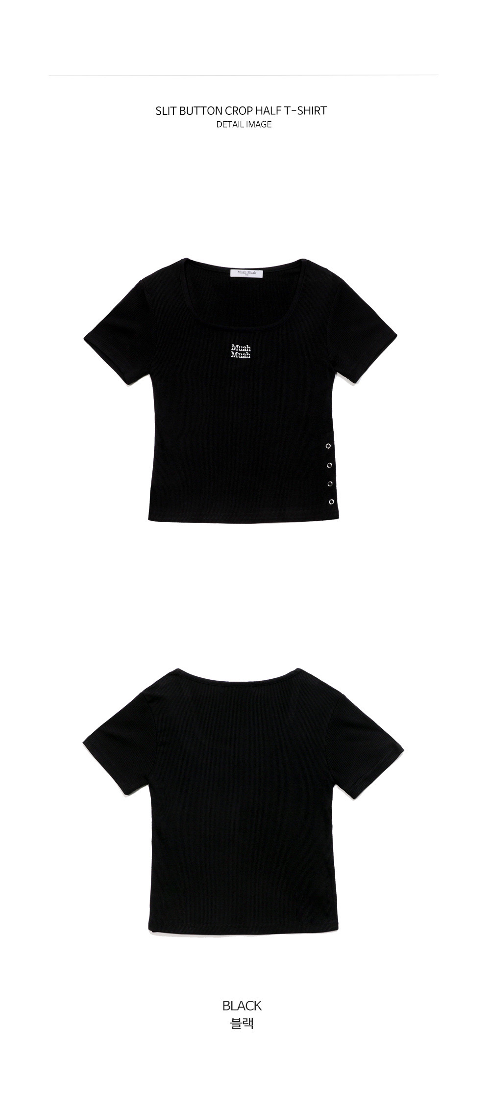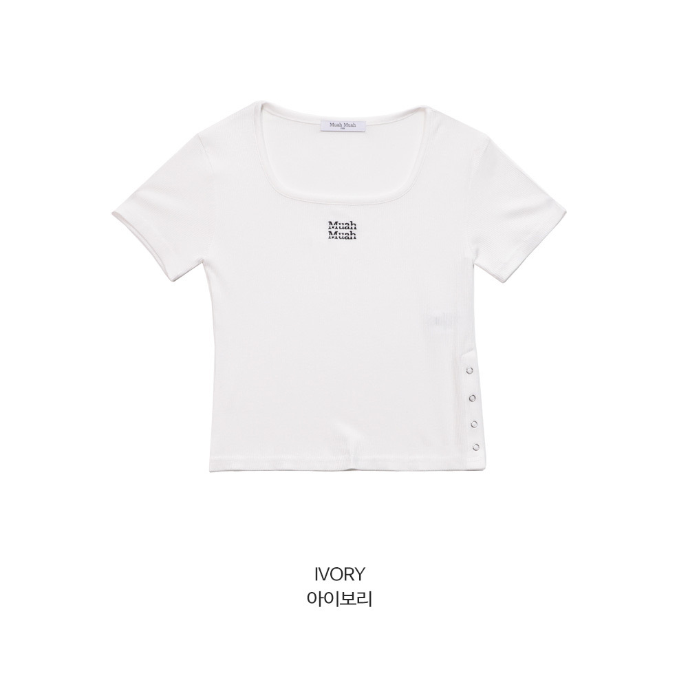 【29.3截單!限時優惠預訂】韓國MUAH MUAH SLIT BUTTON CROP HALF T-SHIRT(2色)