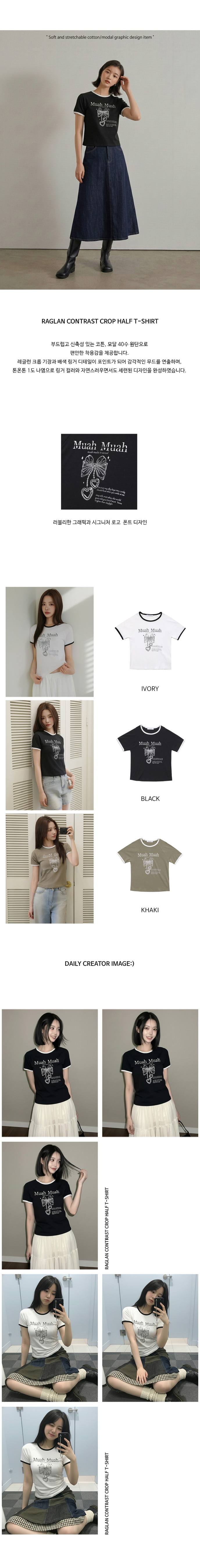 【優惠預訂】韓國MUAH MUAH RAGLAN CONTRAST CROP HALF T-SHIRT(3色)